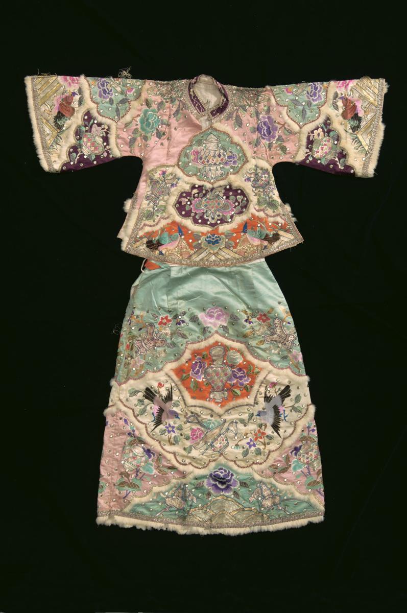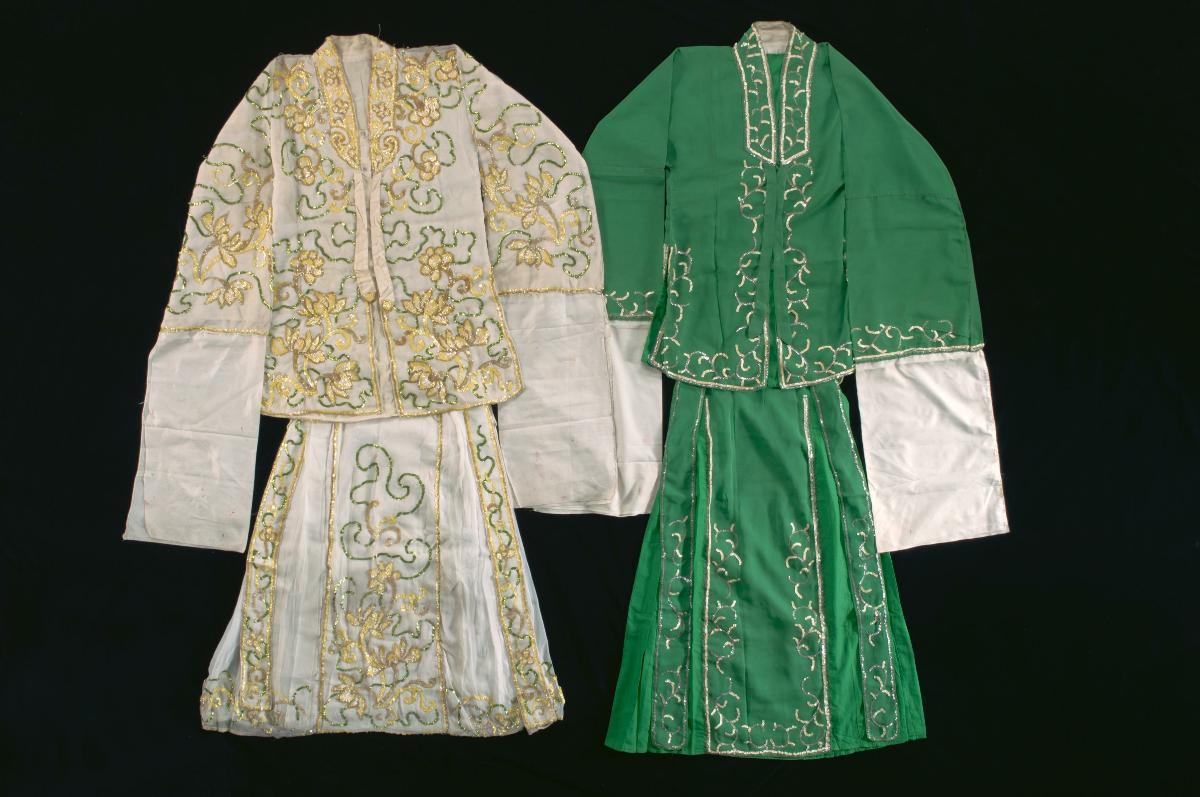 This elaborate set of Chinese opera costume was worn by Mrs. Joanna Wong Quee Heng, JP, BBM, in her role as Princess Chang Ping in the opera entitled "The Patriotic Princess".Mrs. Wong is a veteran Chinese opera practitioner who has been practising her art since the 1950s. She received the Cultural Medallion in 1981, becoming the first Chinese opera artist to be conferred the prestigious award. Mrs. Wong also started the Chinese Theatre Circle (CTC) in 1981, and was both its Artistic Director and Chief Leading Actress. The CTC staged many successful local and overseas performances under her leadership. Mrs. Wong is credited with reviving the Cantonese opera scene in Singapore and elevating the art form. An effectively bilingual performer, she pioneered the use of English subtitles to accompany her performances to attract and cater to a growing English-speaking audience. She was also responsible for grooming many promising opera artistes, the most notable being Lou Mee Wah, who received the Cultural Medallion in 1997.