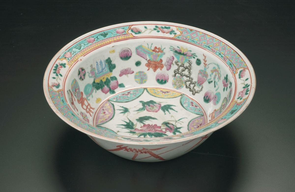 This model wash basin would have been part of a larger group of Ming household funerary items. It is covered in dark amber and green glazes, colours typical of 'sancai' (‘three colour’) glazes. The practice of using lead-glazed burial wares had already started during the Han dynasty (206 BCE-220 CE). This glaze technology further developed during the Tang dynasty (618-906) into ‘sancai’ (‘three-colour’) glaze. It included colours such as cream, amber, brown and blue. The glaze tradition continued into the Ming period.The custom was an ancient one. It is thought these wares were necessary to the deceased in the next world. Elaborate groups of burial wares were also a display of wealth and social status.