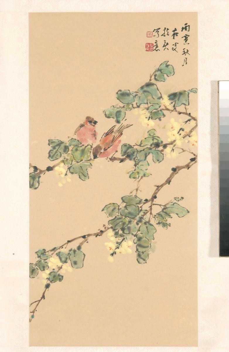 Born in Fujian, China, Shi Xiangtuo (1906-1990) came from an eminent family of seal carvers and calligraphers, Trained by his father, he is best known for his calligraphy and seal work. In addition, Shi was an accomplished ink painter who counted the Shanghai School and, in particular, Wu Changshuo’s paintings as major influences. He emigrated to Singapore in 1938 and contributed immensely in the area of art education: first as a principal at a primary school and later as a lecturer at Nanyang Academy of Fine Arts. In 1979, Shi was awarded the Public Service Star by the Singapore government.In this relatively early work depicting two birds on a branch with blossoming flowers, the influence of the Shanghai School, for which a characteristic is the combination of free sketch and meticulous styles, can be observed.
