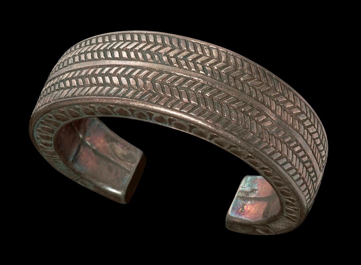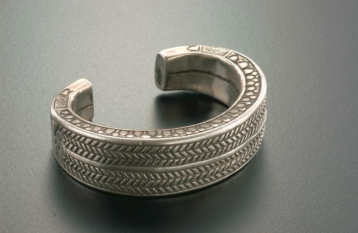 This is a gold bracelet attached with an ornament of a house, with decorative circular patterns on the bracelet. This was worn by aristocratic men and the house ornament represents a microcosm of the universe, the society, and the clan with all its associated alliances. Jewellery has many different functions in island Southeast Asia, for example it was used to indicate social positions, to symbolise the importance of the social relationship between the giver and the receiver during gift exchanges, and to serve as miniature religious objects.