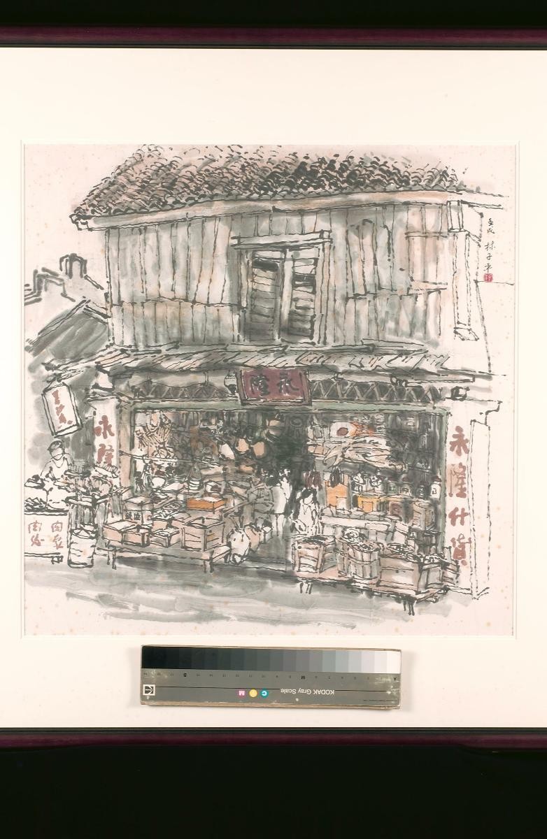 Born in 1923, Lim Tze Peng is largely a self-taught artist. In his oeuvre, ink paintings and calligraphic works feature prominently, although there is a small number of oils, watercolours and drawings. He created a unique style of ink painting using rich brush and tonal details, and this approach is often regarded as a manifestation of the Nanyang Style in the ink medium. Lim, a school principal until his retirement in the early 1980s, was awarded the Cultural Medallion by the Singapore government in 2003.The bustling street life of Singapore provided Lim with endless subject matter for his art. Often painting on site in Chinese ink as the medium allows him to paint with speed, he has produced many works that capture the energy and dynamism of the streets. Lim’s keen eye and careful linework detail a mind-boggling array of goods sold in ‘Sundry Shop’.