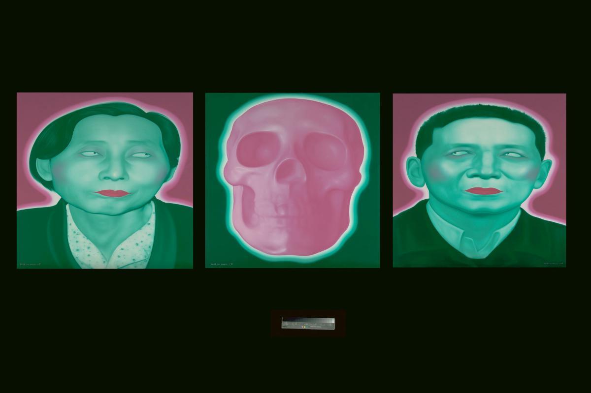 This iconic painting of the first Jain Tirthankara (enlightened being) with his Yaksha-Yakshi (nature spirits) parents is seen seated under a canopy, typical of the Mysore painting of Hindu subject matter. In the foreground, the eight auspicious symbols (conch, knot, fish, lotus, parasol, urn, wheel and victory banner), which are common to Buddhist and Hindu art, are placed.