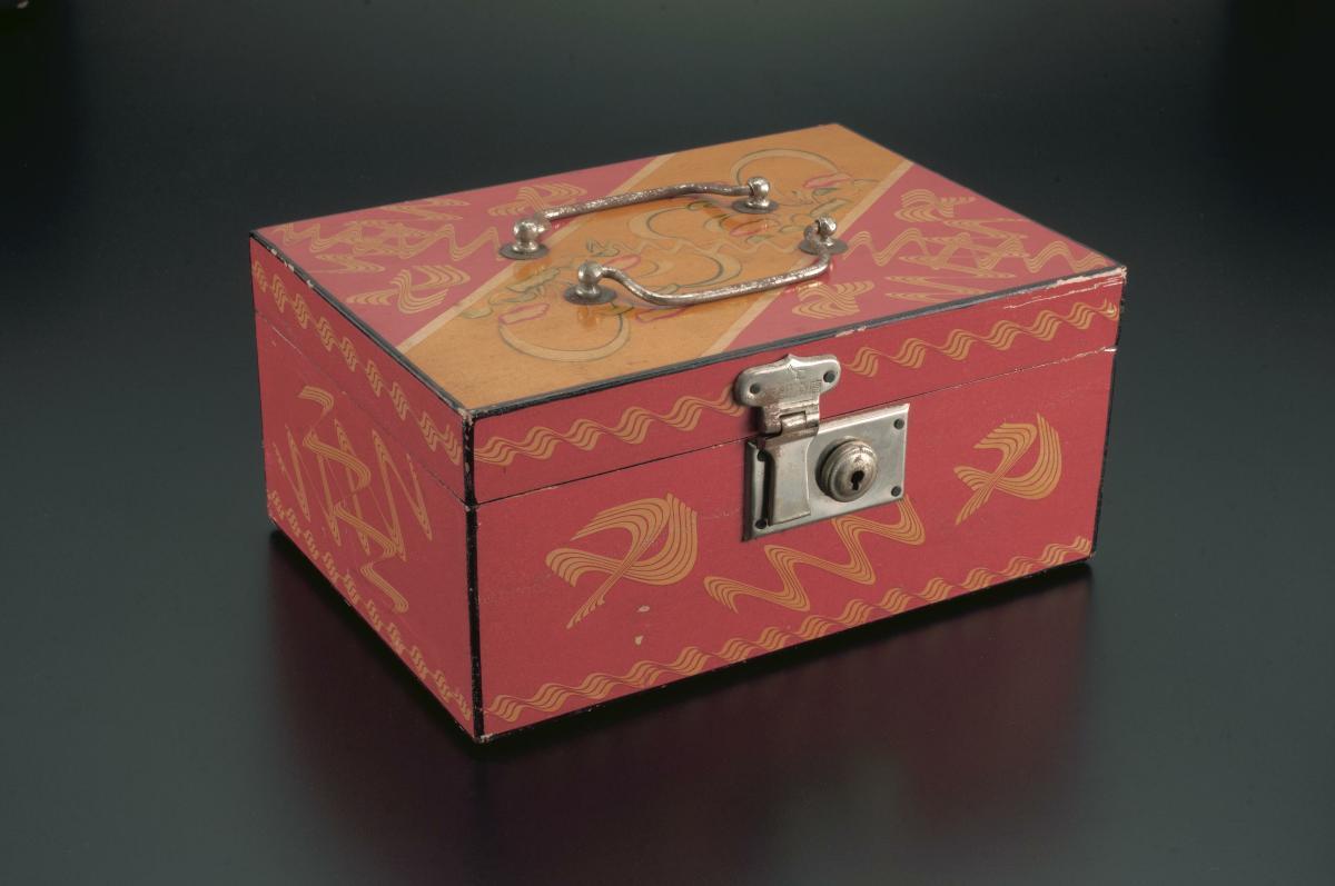 This jewellery box was made in the shape of a durian. It is an example of an array of functional objects such as kettles, gongs, trays and lidded containers that were produced by brass craftsmen in Borneo.