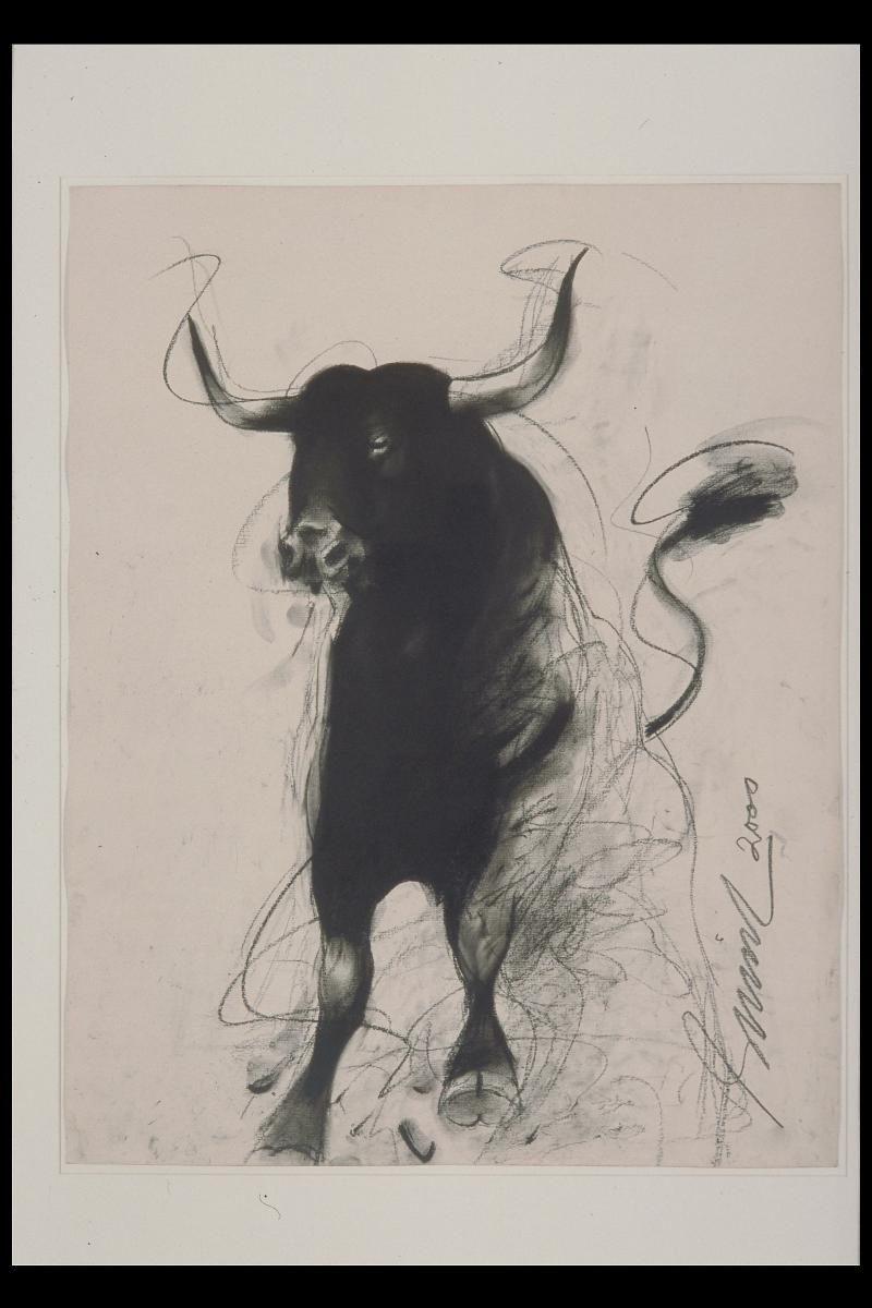 Nandi is the vehicle of Shiva, a Hindu deity famous for his reclusive nature and unconventional lifestyle. In south India, this Nandi vahana (bull vehicle) carries the mobile images of Shiva, and his consort, Parvati, which are placed atop, and taken out in a procession through the town. This graceful animal has a great presence and candid expression, notice the edge of the tongue leaping out of its mouth. Such vehicles are plated in silver and gold and covered with realistic paint.