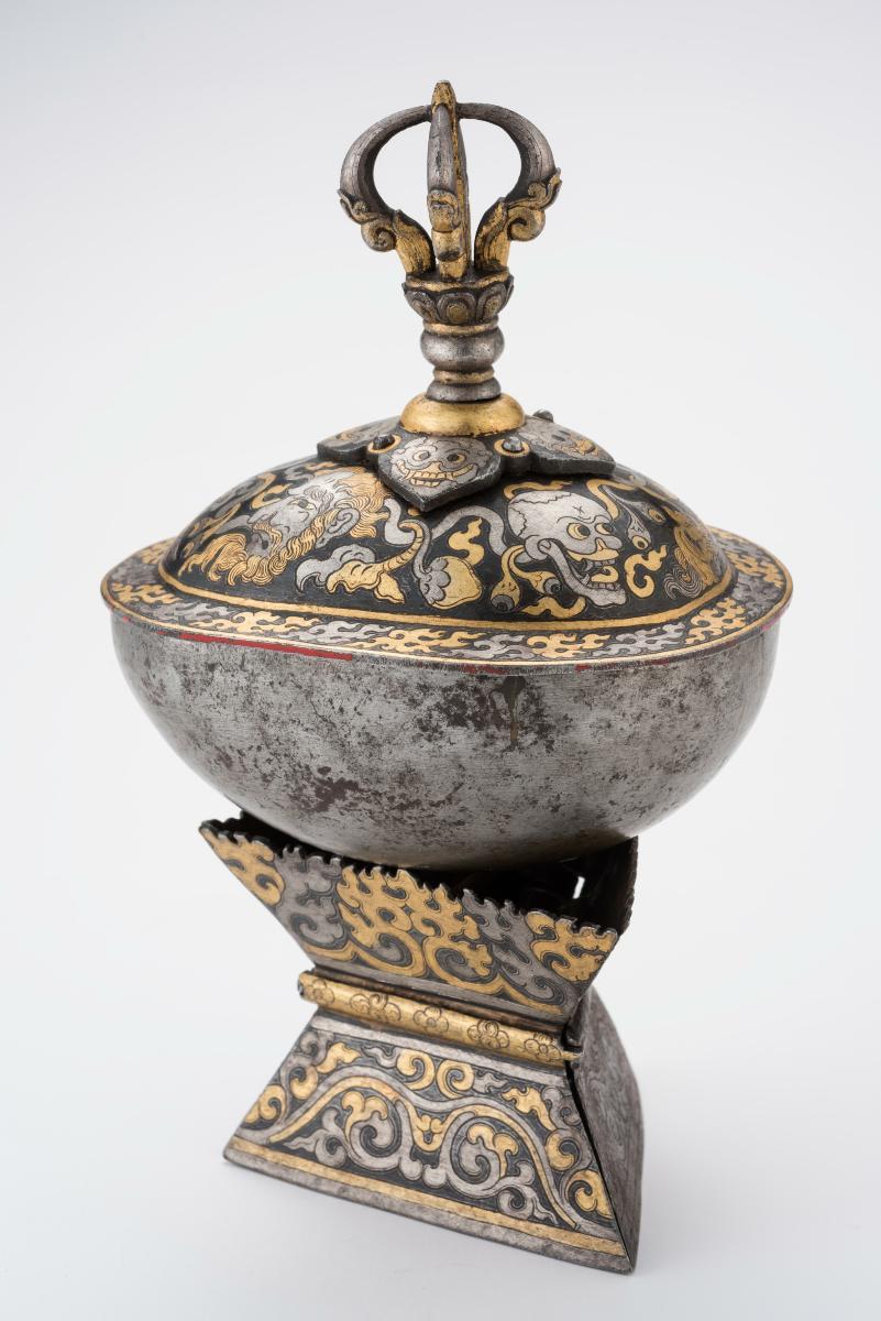 This fragment of a Tibetan chuba (robe) was most probably formerly a gift from the Ming emperors to the Tibetan monasterie. These gifts were usually refashioned into robes, hangings, seat covers and so on. This chuba is woven in the slit tapestry weave technique known as kesi. Tapestry weave was first introduced into China by Uighur weavers in the eighth century.