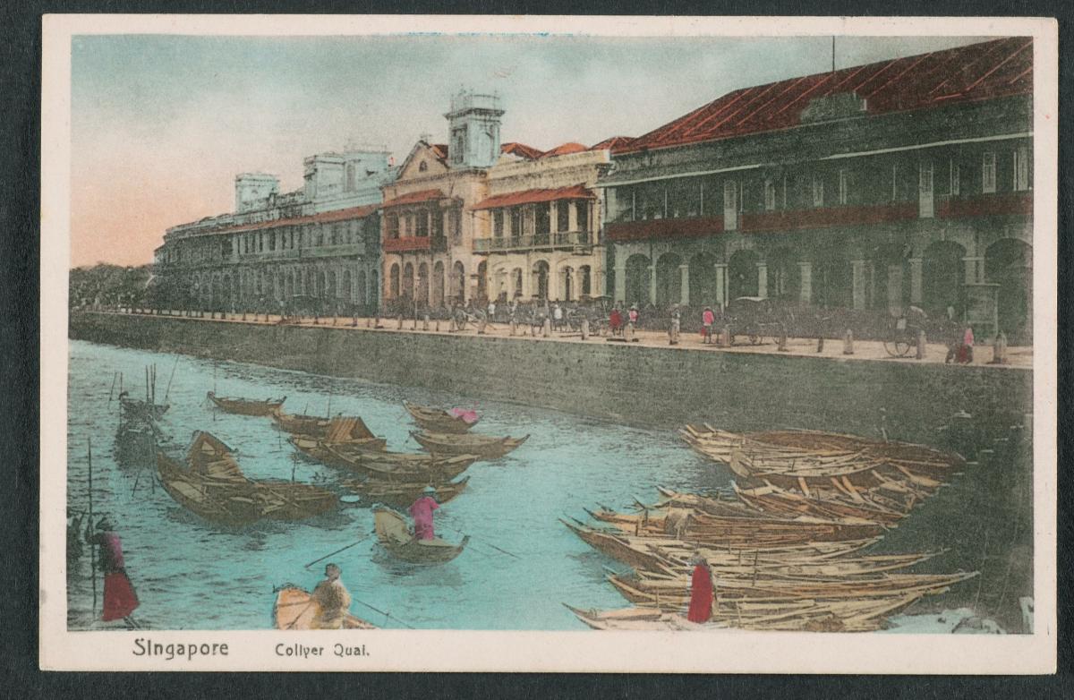 This image shows the frontage along Collyer Quay at the junction of Raffles Quay with Ocean Building seen on the right. Raffles Quay was built on reclaimed land in 1880, on what used to be the southeastern shoreline of Singapore that ran along Telok Ayer Street. Upon completion, Raffles Quay turned into the link between Collyer Quay and Boon Tat Street.