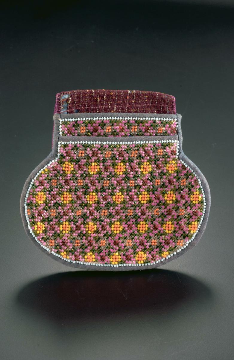This beaded wedding coin purse shows the Peranakan love for ornamentation. The beads used were mostly very tiny pieces, some as small as 0.05mm in diameter. The purse itself was also very small and usually less than 15cm in length. It was also very flat. The light blue or yellow ground on this purse is typical examples from Penang. On this purse is embroidered a pair of mandarin ducks, which signify faithfulness in marriage. There is also a border design of marine life which signify abundance. The auspicious symbols on this piece highlight its ceremonial use during the traditional Peranakan wedding. A purse like this would have been part of the wedding trousseau or dowry and was usually made in advance by the bride herself. Due to its small size, the purse served little other function. However, an empty coin pouch was considered a bad omen. As such, token sums of money, usually in pairs of coins would be placed inside to prevent any misfortune from happening.