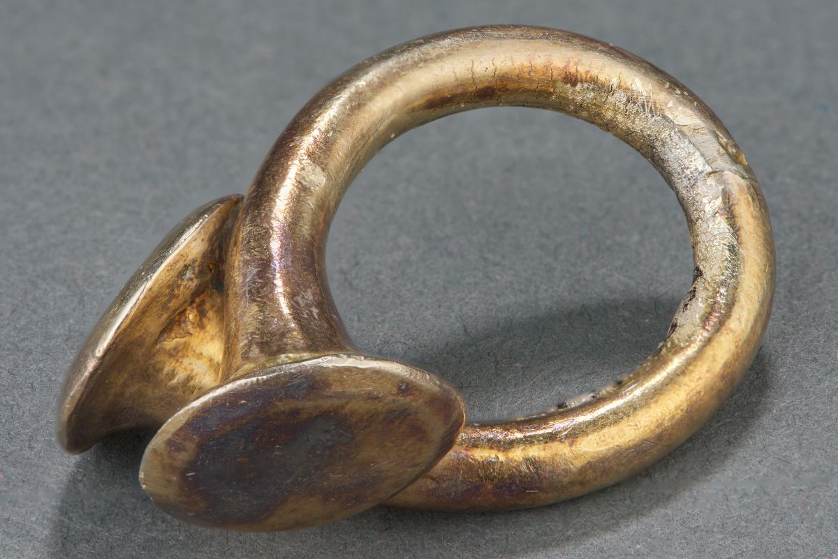 The ear ornament was made from a beaten bar of gold, bent back to form a loop with its flat ends pointing in opposite directions. Other ear ornaments of this period came in the shape of an open oval or a star. Unlike the preceding period that used gold for grave offering, gold was fashioned into personal adornment in this period. This period also saw the beginning of using heat to work gold and the use of techniques like casting and soldering. Such was the sophistication of the techniques that it is possible that gold working had become a specialised occupation by this time.