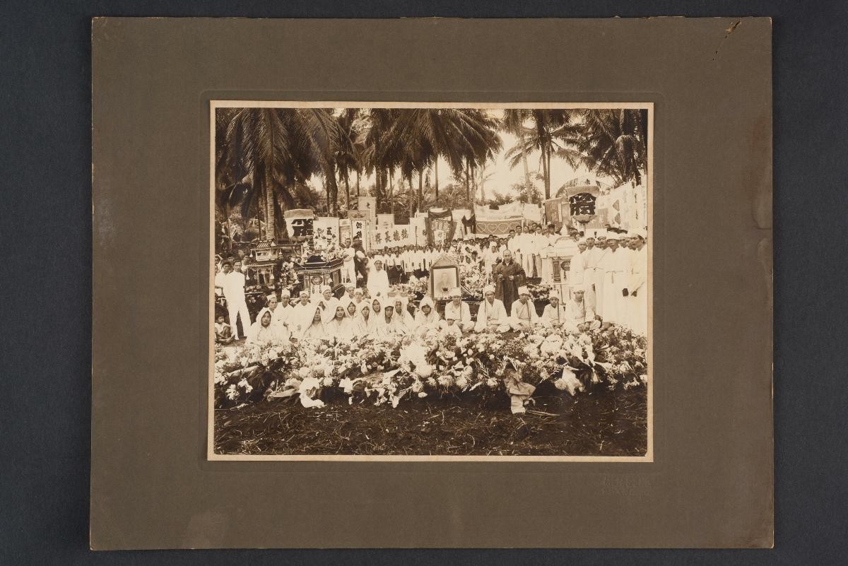 This funeral banner or 'phaa koei' is woven in supplementary-weft (horizontal) bands in green, white and yellow on a red silk ground. Motifs on this type of banner typically include the mythical long-nosed 'sang-hong' or half elephant - half bird, 'ngueak' (sacred dragon or serpent), anthropomorphic figures, and birds. Tall, narrow textiles like this example, are hung vertically outside the house of a deceased person during a funeral ceremony in the Tai areas of northern Laos and Vietnam.The Tai Daeng are one of the largest Lao-Tai groups in the northeast of Laos who have migrated from Vietnam in the 19th century.