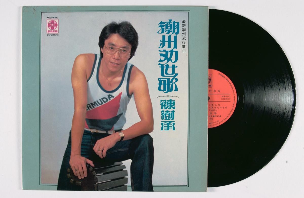 This Teochew vinyl record titled ‘Zhu Fan Xian Cai’ (猪番咸菜) features pop songs by singers Wang Sha (王沙) and Qiu Yin (秋吟). The 33½ rpm record was produced by Rome Records (罗马唱片贸易公司, Luomachangpianmaoyigongsi).