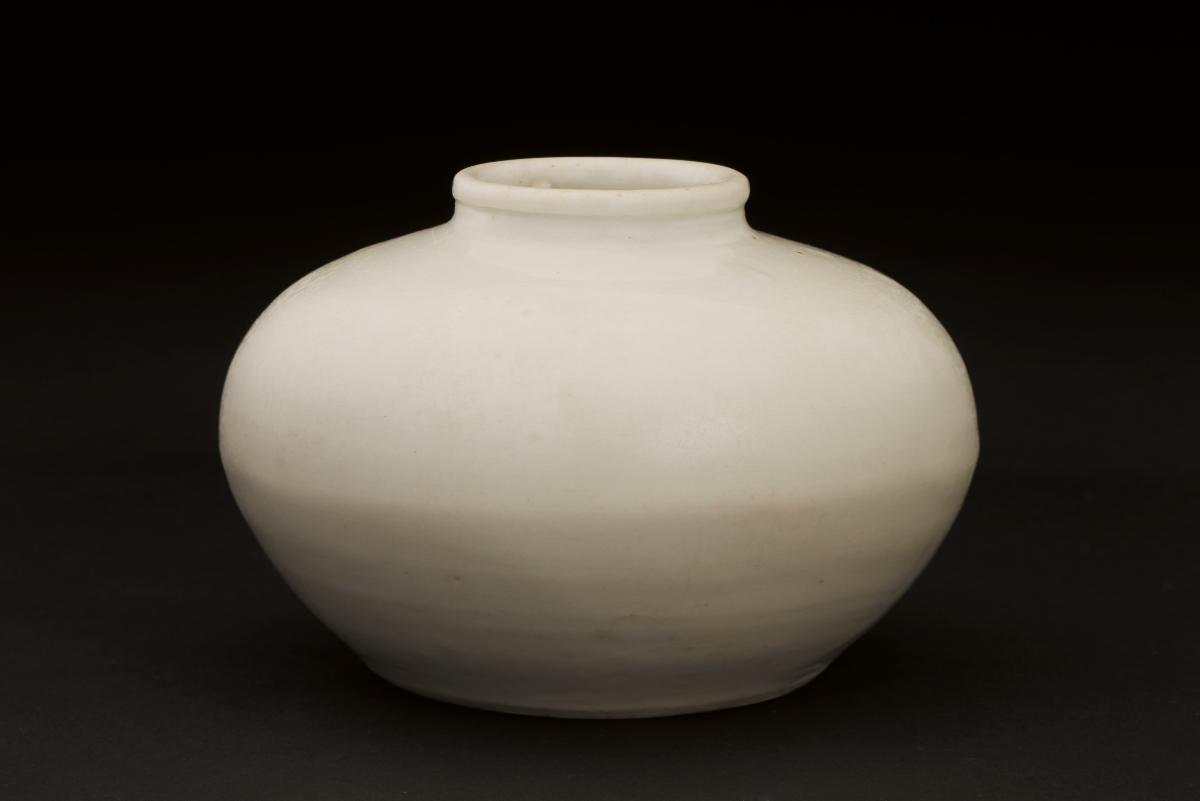 This is a large, octagonal slip-decorated storage jar with stand made from stone or earthernware. The jar is separated into panels and the decorations alternate between birds and floral motifs. This include motifs of roosters and pairs of birds in flight. These jars could be used to store staples such as rice and water and were used by the Peranakan Chinese in their kitchens. The contents were kept cool and safe from rodents and other pests, especially when covered with a wooden lid and raised off the ground with a stand.