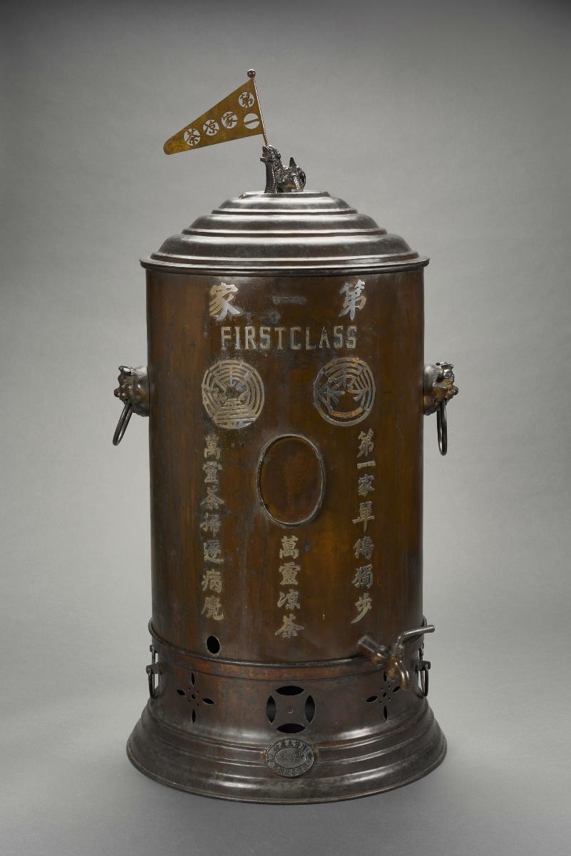 This container was one of many household items used in a Peranakan home at the turn of the century. It may have been used to contain and carry water or other beverages.