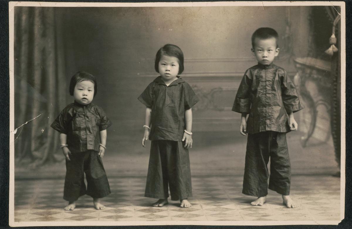 This photograph is part of a set acquired from the National Geographic Society, a non-profit scientific and educational institution. The photographs depict the sights and scenes of Singapore, Malaysia, Thailand, and Indonesia. This particular photograph shows children studying a copy of The New York Times in Banda Neira, Indonesia.