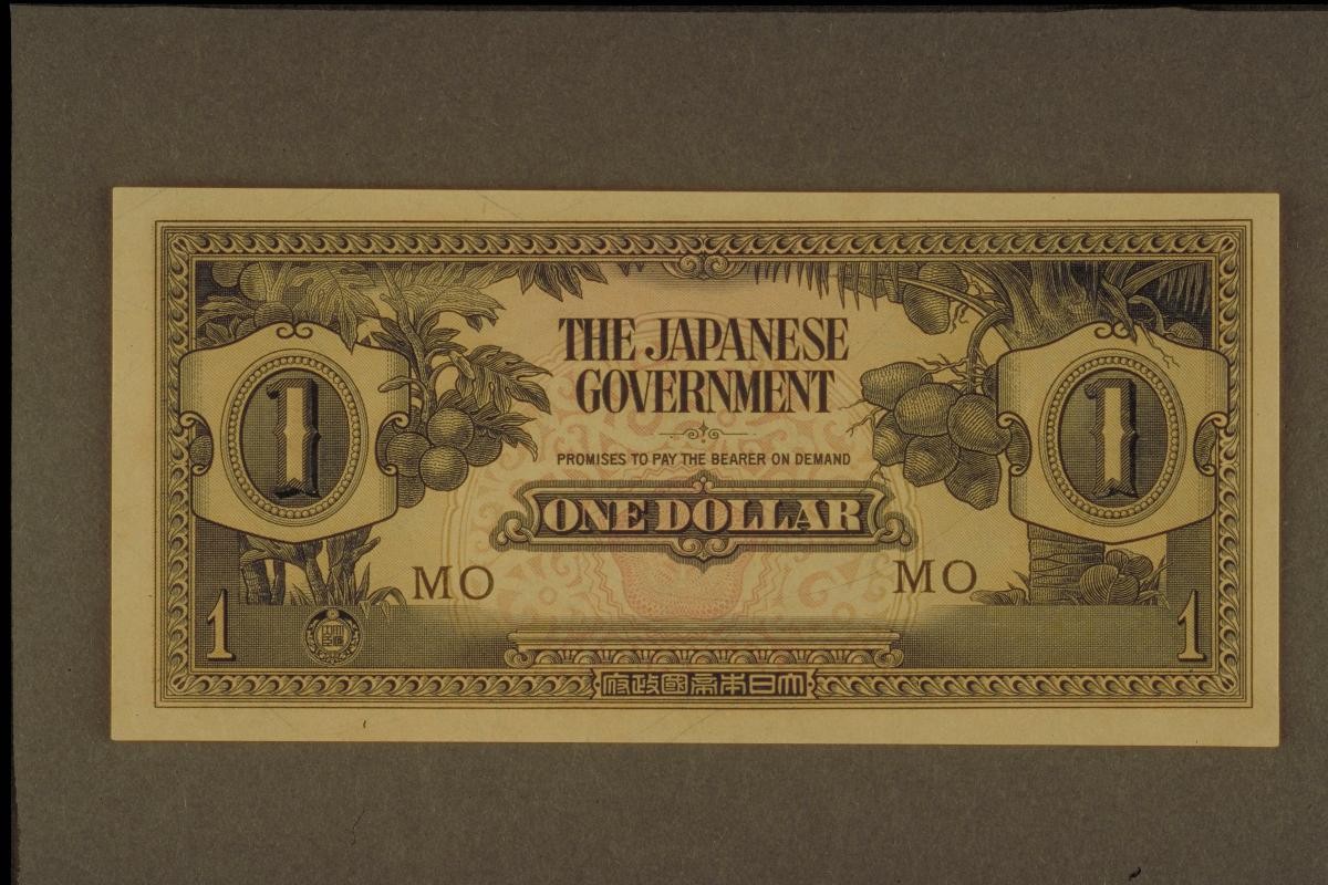 " These are 'Banana Note' dollars, the currency issued during the Japanese occupation. They were referred to as banana money because of the banana tree motif printed on the note. Overprinting of these notes led to hyperinflation and a severe depreciation in the value of the banana note. The front of the note shows a banana tree, a guava tree and a coconut palm flanked by pineapple plants and more coconut palms on the left and right. The back of the note is from the point of view of looking out to sea, where a modern ship plys the horizon."