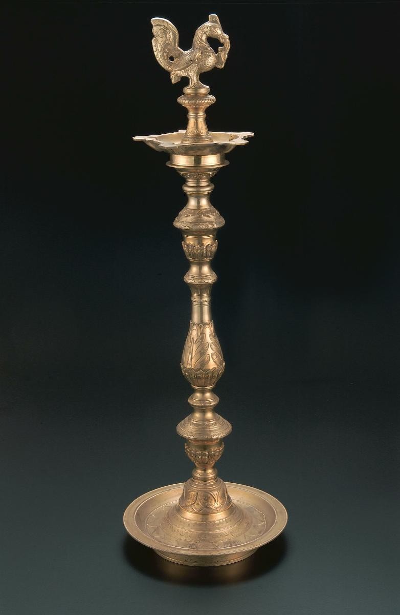 This brass oil lamp was used by Peranakans for their altars and was placed within a red and gold lamp screen. Together, they were placed at a corner of the higher altar table. The key function of the oil lamp was to keep a constant fire burning, especially for the burning of joss sticks used for prayers.In particular, this oil lamp belonged to the family of Mdm Chua Geok Choo and Tan Eng Wah (1923-2013). It was passed down Mdm Chua’s side of the family and was used for the worship of Guanyin, the Goddess of Mercy; in the family home at East Coast Avenue.Tan Eng Wah was also the eldest son of Tan Lark Sye (1897-1972). Tan Lark Sye was a highly regarded Chinese businessman and philanthropist in Singapore.