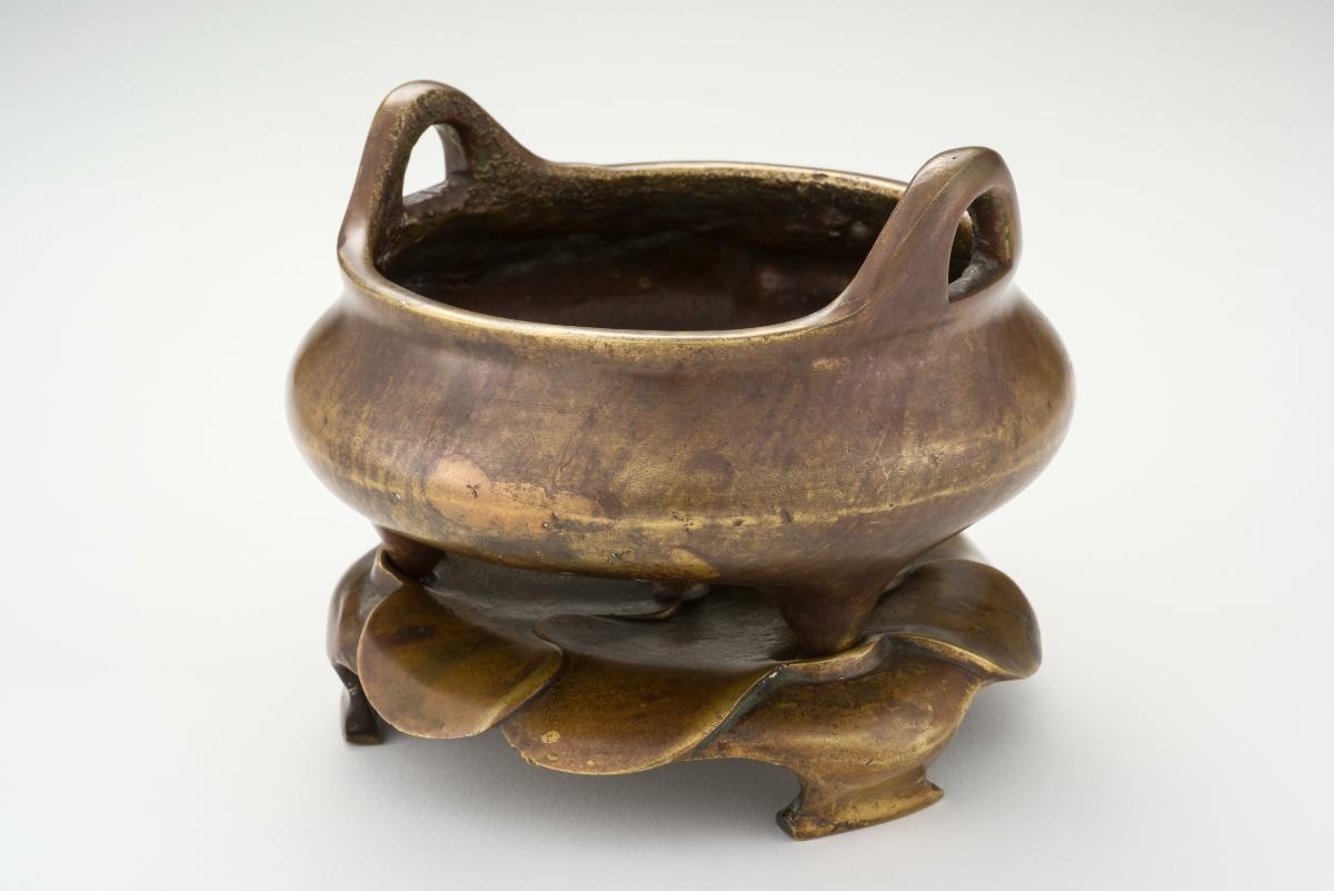 This large, heavy brass censor is placed at the centre of the altar and when in use, would contain incense that would be burnt during special occasions such as Chinese New Year. The form of the censor is highly unusual, with the finial atop shaped by vines and leaves into a strange lion-like figure. The handles are shaped to look like bamboo shoots and leaves. This item is donated by the family of prominent Peranakan, Ong Sam Leong (b. 1857, Singapore – d. 7 February 1918, Singapore). It comes from his ancestral home of Bukit Rose, formerly at 259 Bukit Timah Road. Ong was a well-known successful businessman who made is money in the mining of phosphate on Christmas island, which was historically a territory of colonial Singapore.