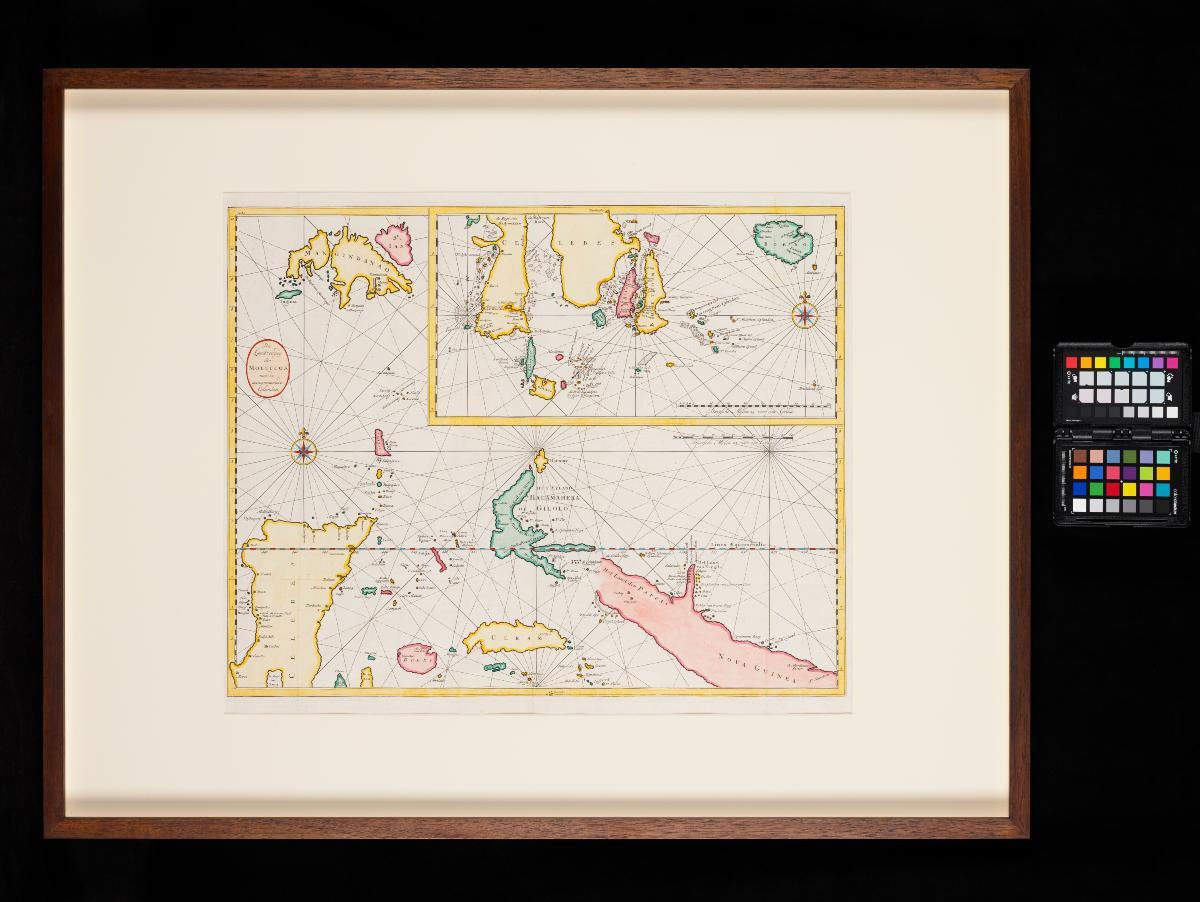 This lithograph based on an original work by French watercolourist and draightsman Louis Auguste de Sainson, which he produced while part of the expedition of the Astrolabe led by Jules D'Urville between 1826 and 1829. It depicts the facial profiles of the various ethnic communities residing in the Moluccas.