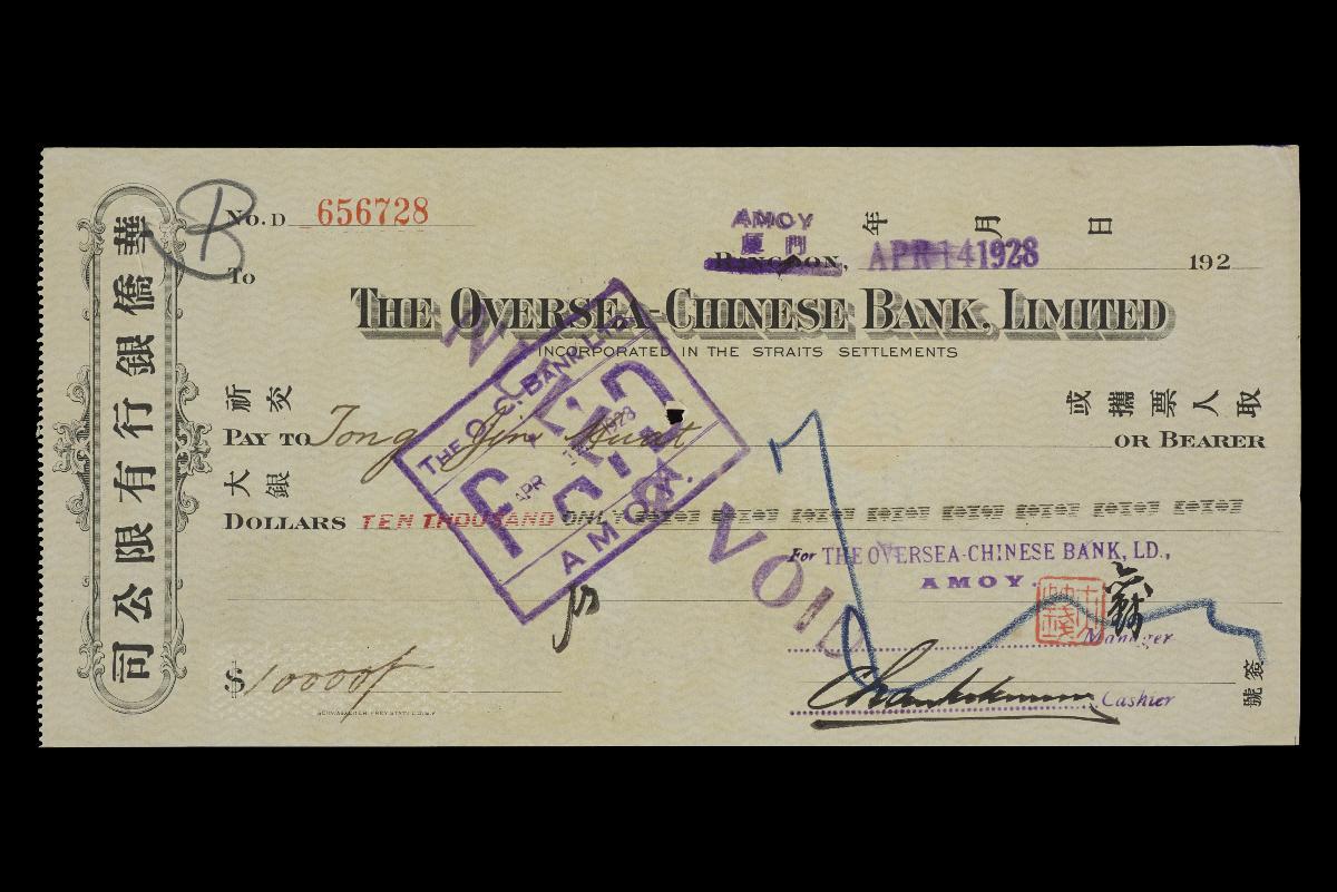 The Oversea-Chinese Banking Corporation was officially established on 1 January 1933 after the merger of three banks: Chinese Commercial Bank, Ho Hong Bank, and Oversea- Chinese Bank. The consolidation was a direct response to the global financial crisis of the Great Depression, which started in 1929. Prominent Peranakans, as well as Hokkien and Teochew leaders of that era married to Peranakans, numbered among the investors spearheading the development of these banks, including Lee Choon Guan, Tan Cheng Lock, Lim Boon Keng, Lim Nee Soon, and Lim Peng Siang. The first Chairman of the amalgamated bank, seated at the centre of the front row with his hand resting on the arm of his chair, was Chee Swee Cheng, who belonged to one of the oldest MalaccaPeranakan families.