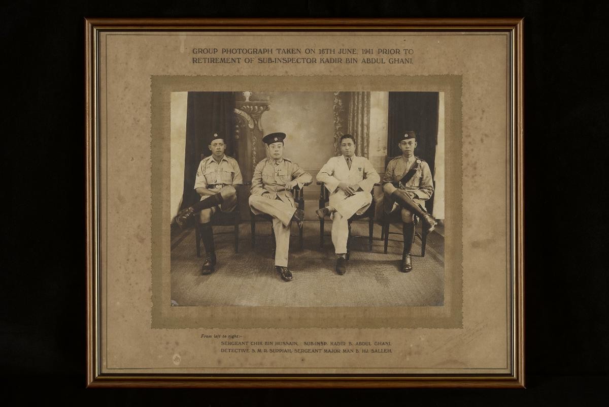 This photograph shows Ramasamy Suppiah Naidu seated in an indoor setting. He wears a plain t-shirt and a chequered sarong.Ramasamy Suppiah was born in Malacca at the turn of the 20th century. In 1920, he and his Chitty Melaka (Peranakan Indian) wife, Kathai Ammal Chitty, moved to Singapore where he joined the police force, rising to the position of Detective Sergeant-Major. Peranakan Indians (also known as Chitty Melaka or Chetti Melaka) are descendants of South Indian traders (particularly Tamils) who settled in Malacca during the15th to 16th centuries and married local women of Malay and Chinese descent. They trace their roots to Kampung Chitty, in Gajah Berang, Malacca, and there is a small community numbering approximately 5,000 in Singapore.