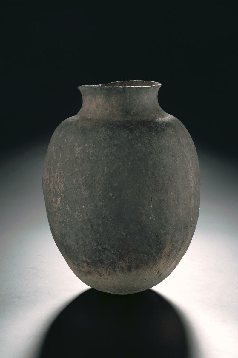 Earthenware pots such as this example are typically used to carry or store water. The porous nature of the unglazed ceramic serves to keep the water cool by means of evaporation through its surface. A standard shape for such pots is round-bottomed, made to be balanced on the head or the hip and to be carried long distances. They can either be handmade or wheel-thrown. A wide range of pots are made for everyday household use with regional variations of design and decoration. They can also be made to store other liquids or grains. As refrigeration is not an affordable option for most village households in India, unglazed earthenware is perfect for storing food, and additionally is cheaper than plastic, glazed China or stainless steel.The production of clay vessels in India is an ancient tradition that dates back to 6,000 BCE. Evidence of pottery has been found in the early settlements of Mehrgarh from the Indus Valley Civilisation. Many of the forms, techniques and designs of this period are still in use today.