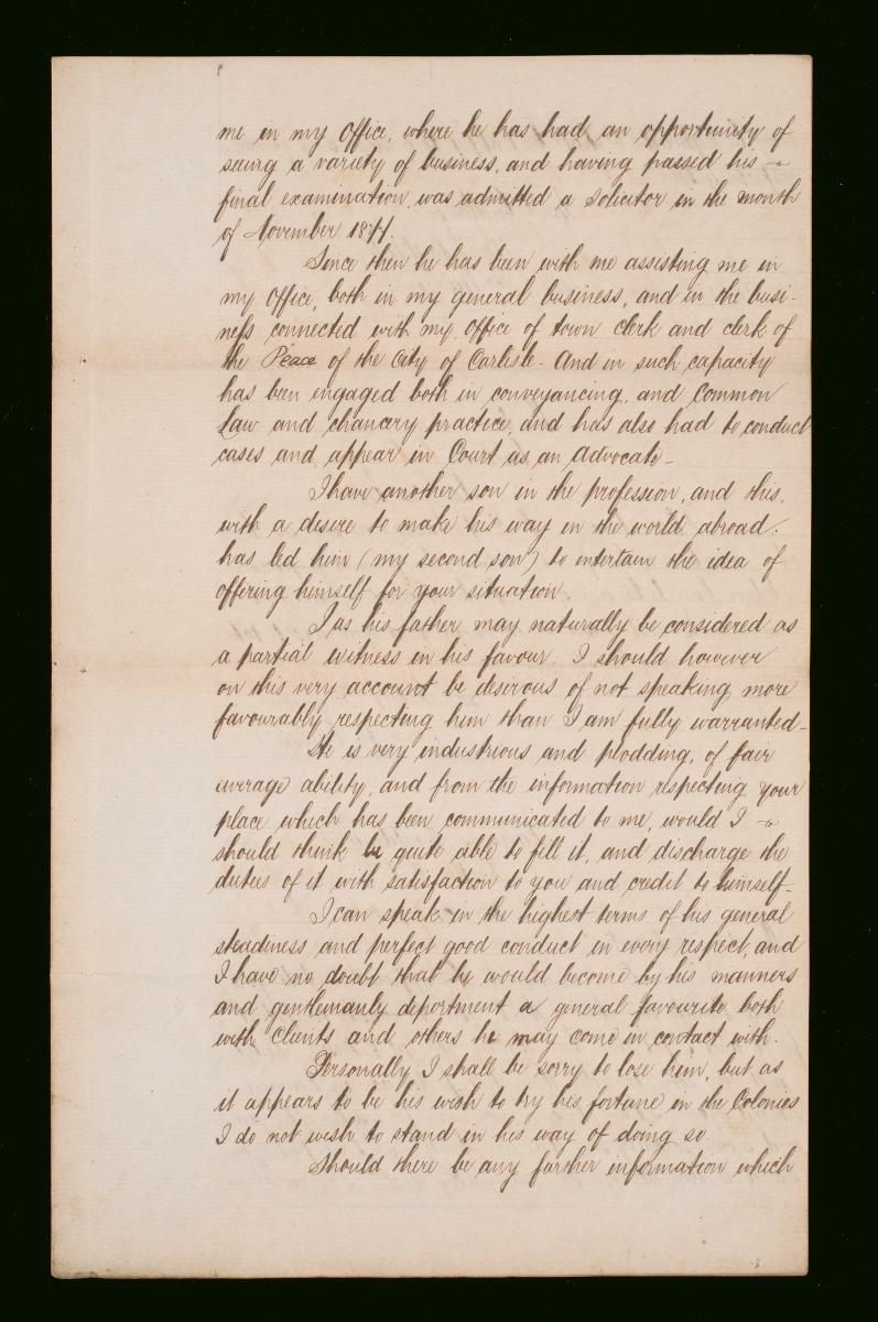 This is a letter addressed to Edward James Nanson from T.F.E. Thompson dated 9 November 1878. It is part of a collection of legal documents from the 19th and early 20th centuries which provides a glimpse into the work of the notable personalities who left their mark on Singapore’s legal history, and the economic and other transactions undertaken by ordinary immigrants in 19th century Singapore that tell stories of misfortune and indebtedness which would otherwise have disappeared from history.