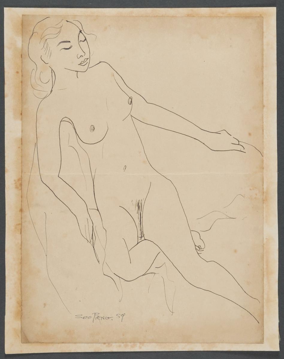 Born in 1942 in Singapore, New York/Singapore-based artist Wong Keen’s art training began under Liu Kang and advanced under Chen Wen Hsi’s mentoring. In 1961 Wong left to study at The Art Students League, New York, and in 1963 received the League’s prestigious Edward G. McDowell Travelling Scholarship to travel and study in Europe. Wong introduced the female form into his work in the mid-1960s and since then they have made frequent appearances. Echoing his teacher Vaclav Vytlacil’s insistence that form is an important component, Wong developed his concern with the female form as an idea of form rather than realism, exploring the versatility of the female form as a subject matter, into a strong stylistic aspect of his practice. His figures are regularly portrayed as quick sketches in sinuous strokes, as studies of colour and planes, or reduced to a component of an abstract tableau.
