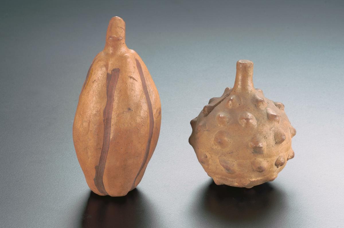 This earthenware pot has been adapted for use as a money box. The mouth is sealed and holes are punched into the walls of the pot. The everted mouthrim, tall neck and bulbous body are reminiscent of earthenware kendi (ritual vessel ware) form of this period. Money-boxes in various shapes and sizes were popular during the Majapahit period (1293-1528).