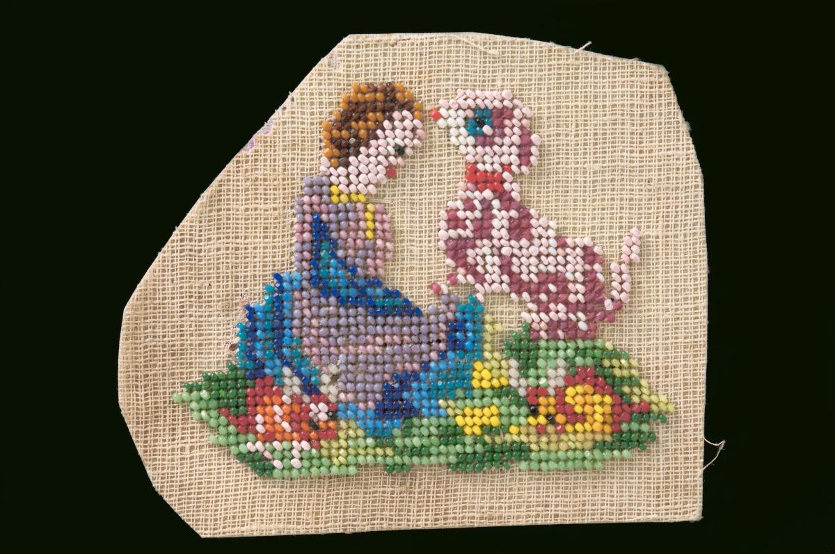 This painting is the artist’s impression of an old photograph of Madam Neo Kim Neo, a Singapore Peranakan well known for her beadwork skills. She is doing beadwork in the traditional way, on the floor with a wooden frame clipped onto a wooden frame holder. The artist, who is a Peranakan, has been using old photographs in her recent work. She admits the subject matter is an important link to her Peranakan heritage. A notable feature of her paintings is the limited use of colour, the neutral tones which Oon describes as the ‘unofficial colour of memory’. By translating the images in photographs into paintings using broad brushstrokes, Oon feels she is able to create fresh layers of meaning and nuance in her works.
