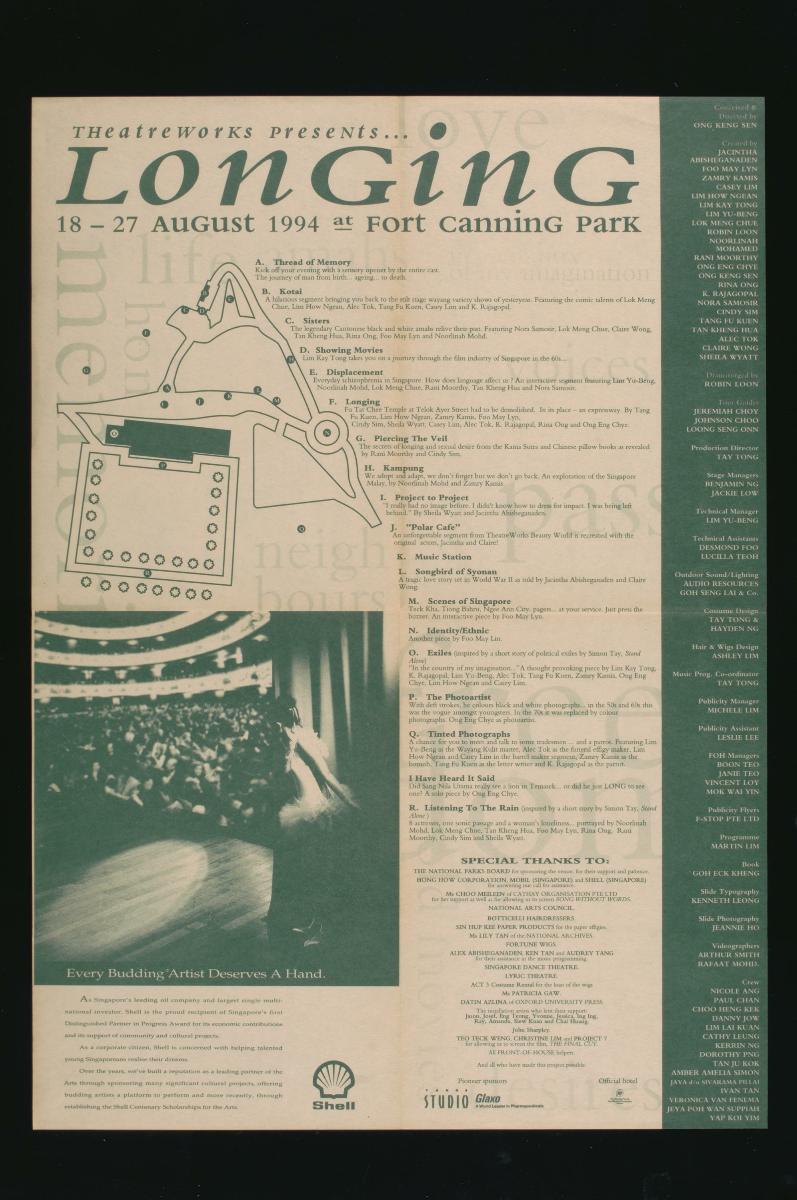TheatreWorks is an independent, non-profit theatre company in Singapore that was established in 1985. An innovative and progressive institution, one of its many initiatives is the Writers’ Laboratory, a programme which supports and nurtures local playwrights. The company also produces and promotes interdisciplinary and cross-cultural performances. TheatreWorks relocated to its current premises on Mohamed Sultan Road from Fort Canning Centre in September 2005.