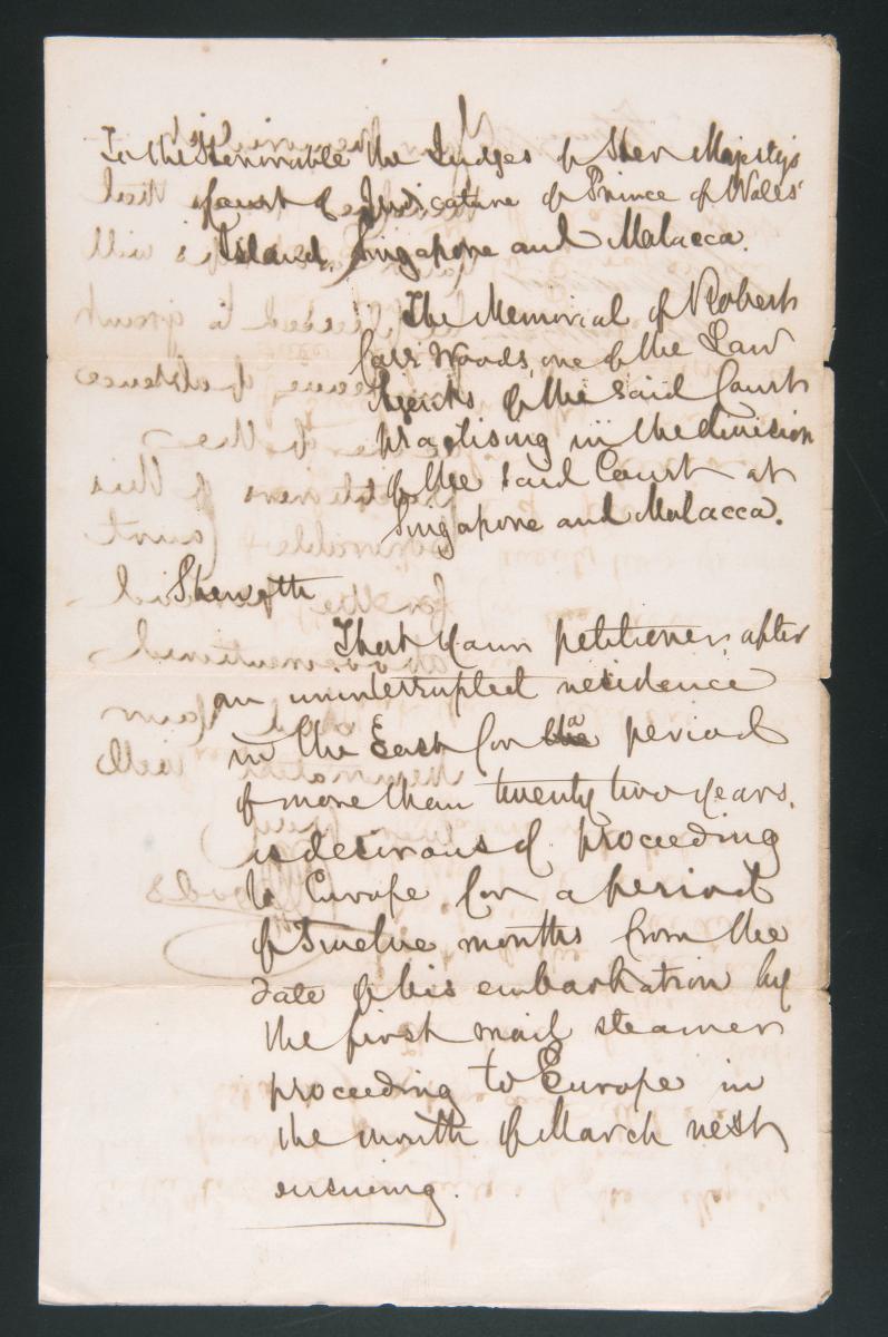 This document is the articles of clerkship issued on 31 December 1859 in relation to Robert Carr Woods Senior and Junior. It is part of a collection of legal documents from the 19th and early 20th centuries which provides a glimpse into the work of the notable personalities who left their mark on Singapore’s legal history, and the economic and other transactions undertaken by ordinary immigrants in 19th century Singapore that tell stories of misfortune and indebtedness which would otherwise have disappeared from history.