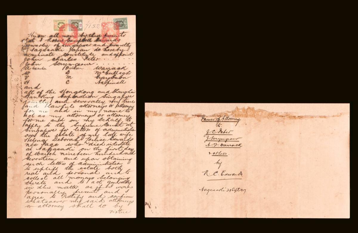 This is the petition of Theodora Edwards concerning the administration of the estate of Hugh Andrew Athol Edwards. It is part of a collection of legal documents from the 19th and early 20th centuries which provides a glimpse into the work of the notable personalities who left their mark on Singapore’s legal history, and the economic and other transactions undertaken by ordinary immigrants in 19th century Singapore that tell stories of misfortune and indebtedness which would otherwise have disappeared from history.