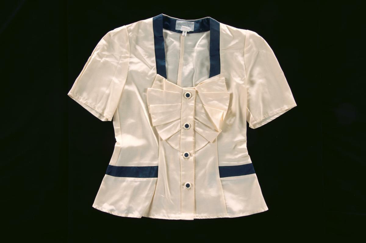 Off-white fitted jacket with pleated peplum by Benny Ong