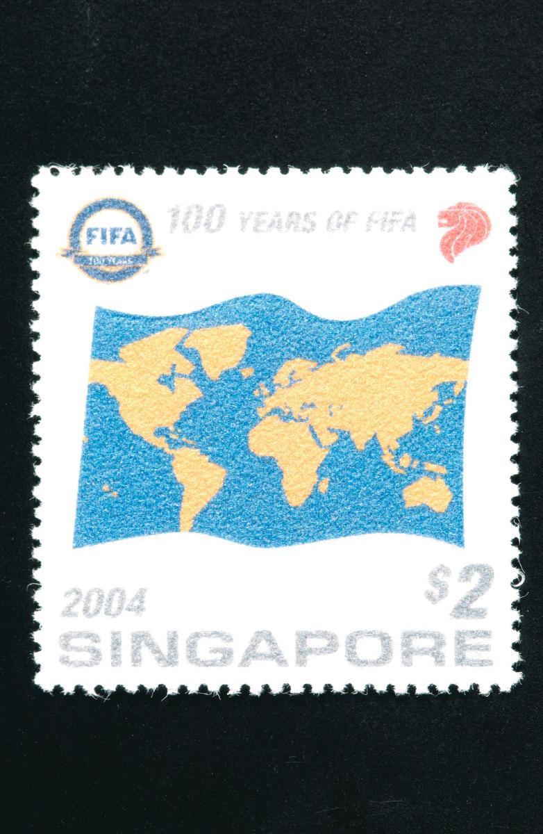 This is one of the four stamps issued as a set by the Singapore Post to commemorate 100 years of FIFA.Singapore’s postal services were managed by the British in the initial period of Singapore’s founding in the early 19th century, and as part of the Postal Department of the Federation of Malaya from 1949. The government of Singapore only assumed direct administration of postal functions following the nation’s independence in 1965. Restructuring undertaken in 1982 led to the merger of the Singapore Postal Services Department with the Telecommunication Authority of Singapore (Telecoms). Telecoms was subsequently divided into three separate entities in 1992: a reconstituted Telecommunication Authority of Singapore (now part of the Info-communications Development Authority), Singapore Telecommunications Private Limited (now SingTel) and Singapore Post Private Limited. The latter became a public-listed company, Singapore Post Limited (SingPost), following its listing on the Singapore Exchange in 2003. Apart from its mail business, SingPost has also diversified into the logistics and retail sectors.