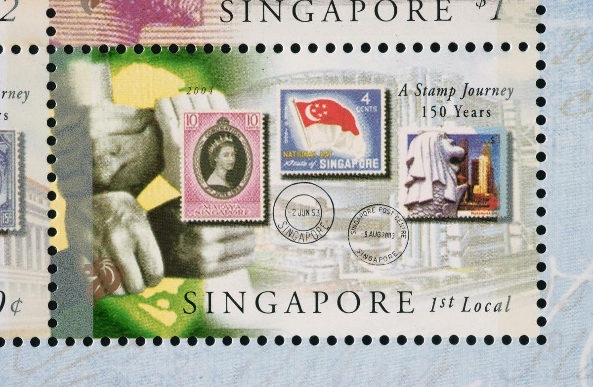 This is a set of four stamps issued by the Singapore Post to commemorate the 150th anniversary of the first use of stamps in Singapore. They were released in conjunction with the inaugural opening of the World Stamp Championship, which was hosted by Singapore in 2004.Singapore’s postal services were managed by the British in the initial period of Singapore’s founding in the early 19th century, and as part of the Postal Department of the Federation of Malaya from 1949. The government of Singapore only assumed direct administration of postal functions following the nation’s independence in 1965. Restructuring undertaken in 1982 led to the merger of the Singapore Postal Services Department with the Telecommunication Authority of Singapore (Telecoms). Telecoms was subsequently divided into three separate entities in 1992: a reconstituted Telecommunication Authority of Singapore (now part of the Info-communications Development Authority), Singapore Telecommunications Private Limited (now SingTel) and Singapore Post Private Limited. The latter became a public-listed company, Singapore Post Limited (SingPost), following its listing on the Singapore Exchange in 2003. Apart from its mail business, SingPost has also diversified into the logistics and retail sectors.