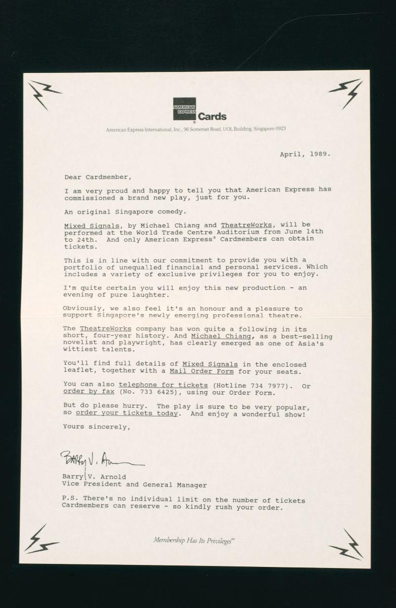 Invitation to Theatreworks’ production, ‘Mixed Signals’