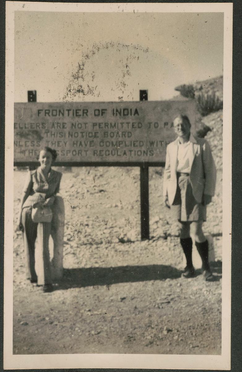 A British man and his wife at the Khyber Pass overlooking Afghanistan