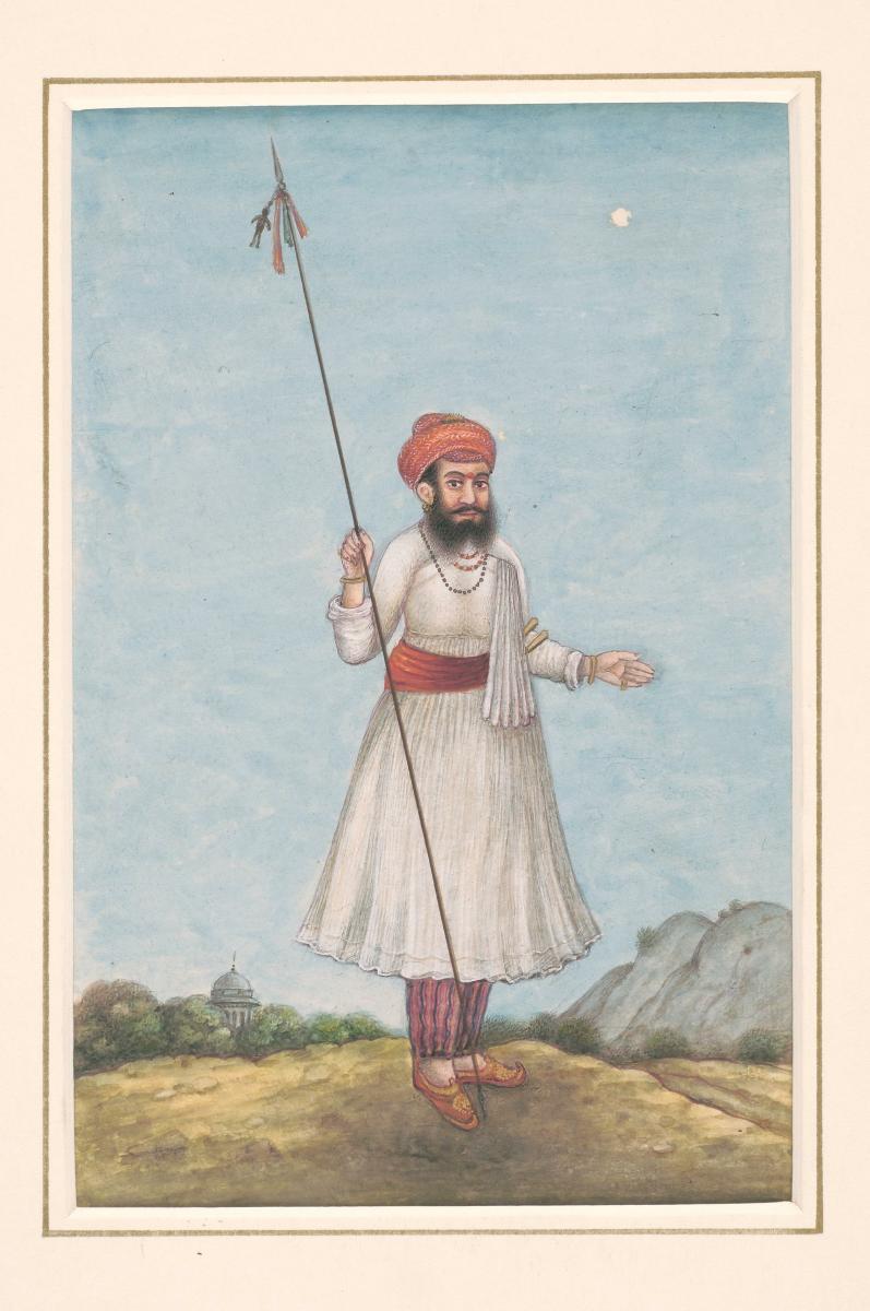 This dome-shaped ‘chhatri’ (umbrella) is decorated with ornate patterns and floral vine motifs. It also features seated figures depicting the 10 Sikh gurus with the central and largest one being that of Guru Nanak Dev, with a sunburst halo encircling his head. The remaining nine gurus appear in the circumference of the ‘chhatri’, facing him.The ‘chhatri’ is often seen as a symbol of nobility and the divine. It would have been hung over the holy book as a sign of respect or used during a religious ceremony. This is still relevant in the modern day context where the priest will place the Guru Granth Sahib (the 11th and Eternal Guru) underneath it with the ‘granthi’ (reader) holding a ‘chauri’ (fly whisk) as a sign of respect.