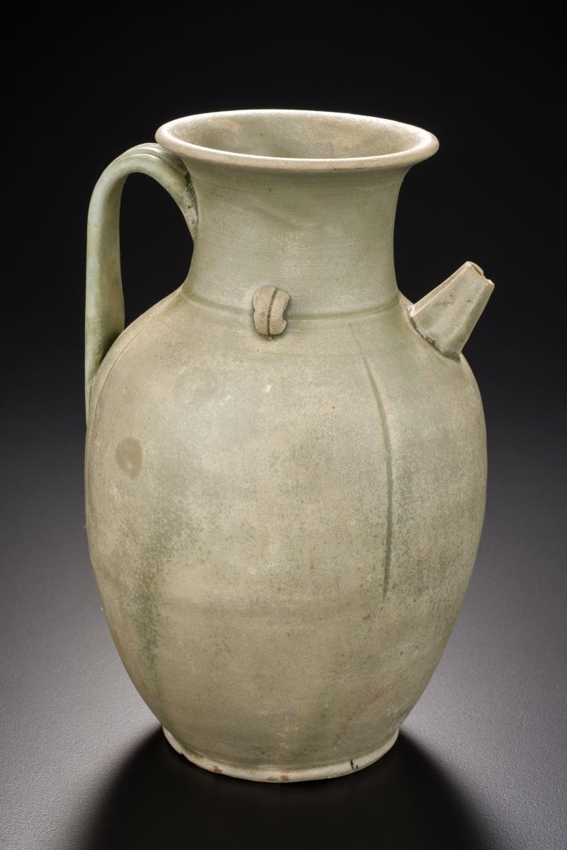 This oil pitcher belongs to a collection of ten ritual objects used during daily Hindu worship and festive occasions in temples. This object, along with other ritual items, is presented before the image of a deity by priests during the performance of the 'upacara' (daily prescribed duties). The other ritual objects include food, water, incense, mirror, flywhisk, umbrella, fan and lighted lamps. The image of the god is seen as the embodiment of the deity and thus accorded royal treatment.