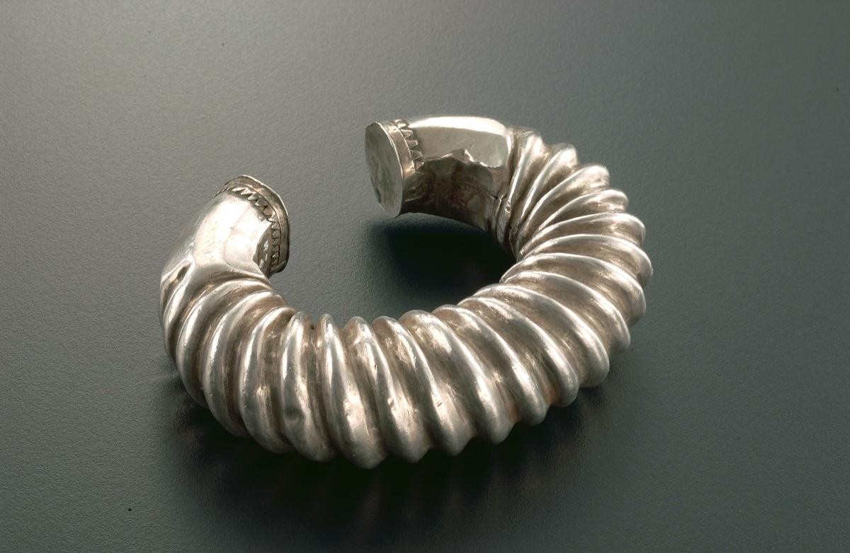 This hollow bracelet represents a fraction of the wide range of silver jewellery made, worn and exchanged by highland communities in northern Thailand. Several types of hollow bracelets were worn by Lahu and Akha men. This sheet silver bracelet was probably soldered and then twisted into shape with engraved motifs at each end.For many highland communities, silver was valued more highly than gold. Silver jewellery was a way of investing a family’s wealth to be passed down as heirlooms. It was also believed to have protective properties. Today, where security maybe a problem, silver is kept locked away while aluminium is used as a substitute.Originally, highlanders from China, the Akha and Lahu have recently begun to move southwards into mainland Southeast Asia.