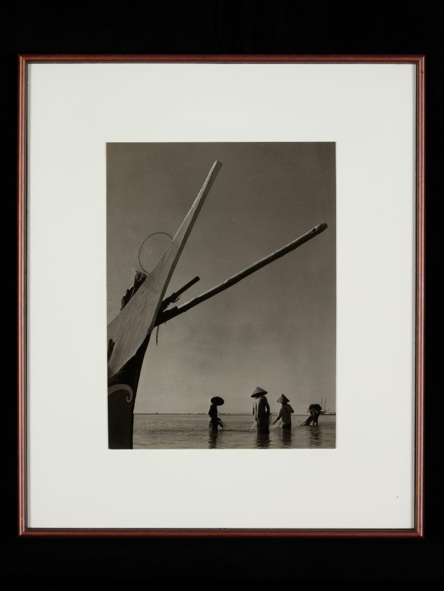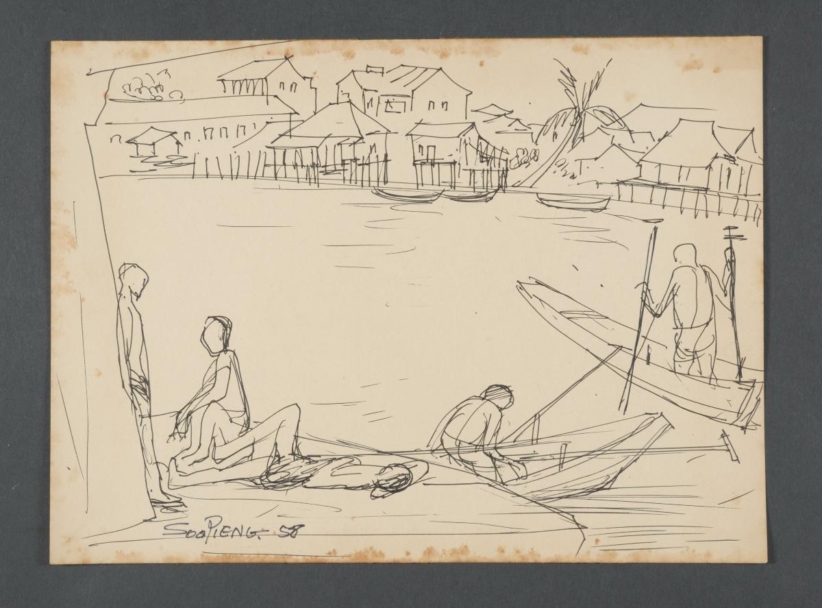 Born in Guangdong Province, China, Chen Chong Swee (1910-1985) came to Singapore in 1931 shortly after graduating from Xinhua Academy of Art, Shanghai. He co-founded the Salon Art Society (now the Singapore Society of Chinese Artists) in 1935 and was a teacher with Nanyang Academy of Fine Arts for over 20 years. In 1952, Chen, together with fellow artists Chen Wen Hsi, Cheong Soo Pieng and Liu Kang, went on what would eventually turn out be a historically significant trip to Bali, Indonesia in search of new inspiration and subject matter. As one of the first artists instrumental in developing the Nanyang Style, Chen pioneered attempts to interpret local landscapes according to the Chinese concept of pictorial composition with Western watercolour techniques.Chen’s artistic style remained realistic throughout his career as he believed that the objective of a painting must be understood by its viewer. Often, Chen depicted scenes around him such as the one here of two fishermen. A note of interest: Chen left his signature on the side of the boat on the left of the picture.