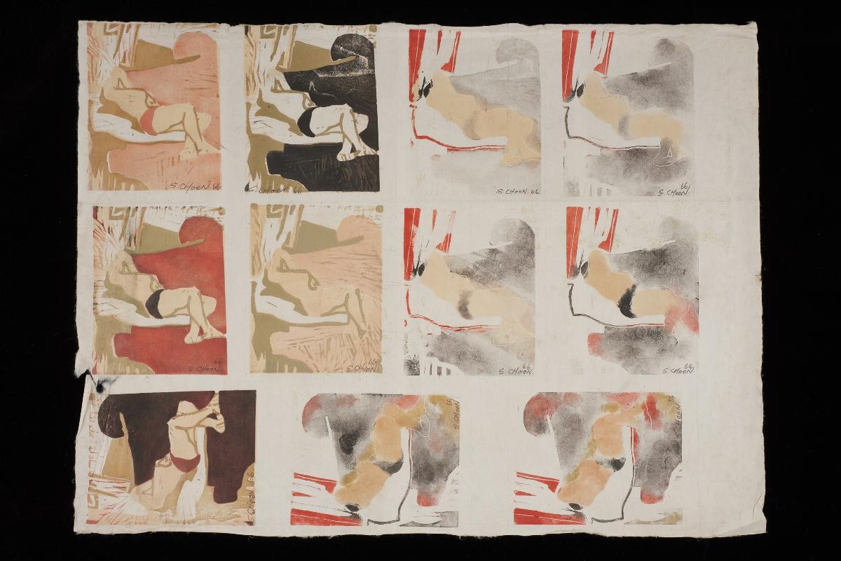 Cheong Soo Pieng was born in Amoy, China in 1917. He studied at the Amoy Art Academy and the Xinhua Academy of Fine Arts in Shanghai from 1933 to 1936. In 1946, Cheong settled in Singapore and taught at the Nanyang Academy of Fine Arts until 1961. Together with fellow artists Chen Wen Hsi, Chen Chong Swee and Liu Kang, they went to Bali, Indonesia in 1952 in search of new inspiration and subject matter. Cheong had a dominant influence on the development of modern art in Singapore and is regarded as one of Singapore’s pioneer artists. His innovative experimentations towards developing his stylistic oeuvre had a great influence on his students, many of whom later became established artists in the region. For his contributions in art, he was awarded the Meritorious Service Medal by the Singapore government in 1962. Cheong passed away in 1983 in Singapore.Cheong’s distinctive depiction and stylization of the human form can be seen in ’Resting’. It was during this period in the 1970s that, Cheong experimented with abstraction and this could account for the coloured shapes in the background. Various techniques are used in the depiction of this image. In this case, Soo Pieng who was both a painter and a sculptor rendered the image by hammering halfway into the metal or board into different reliefs that simulate foliage or grass prior to the layers of oil.
