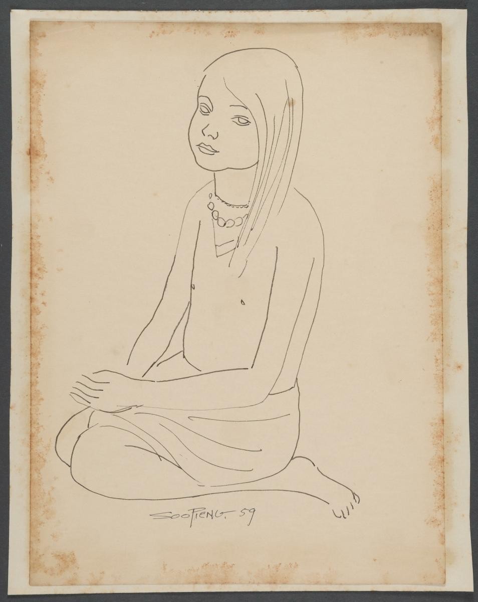 Cheong Soo Pieng was born in Amoy, China in 1917. He studied at the Amoy Art Academy and the Xinhua Academy of Fine Arts in Shanghai from 1933 to 1936. In 1946, Cheong settled in Singapore and taught at the Nanyang Academy of Fine Arts until 1961. Together with fellow artists Chen Wen Hsi, Chen Chong Swee and Liu Kang, they went to Bali, Indonesia in 1952 in search of new inspiration and subject matter. Cheong had a dominant influence on the development of modern art in Singapore and is regarded as one of Singapore’s pioneer artists. His innovative experimentations towards developing his stylistic oeuvre had a great influence on his students, many of whom later became established artists in the region. For his contributions in art, he was awarded the Meritorious Service Medal by the Singapore government in 1962. Cheong passed away in 1983 in Singapore.Cheong was one of the most experimental amongst the pioneer artists; his varied stylistic oeuvre is a testimony to it. ‘Chinese Girl’ is an early work of Cheong, and it shows the influence of Cubism as the portrait is segmented. The colour palette of earth brown, toned down and subdued is however not typical of Cheong of this period which usually features bright impacts.