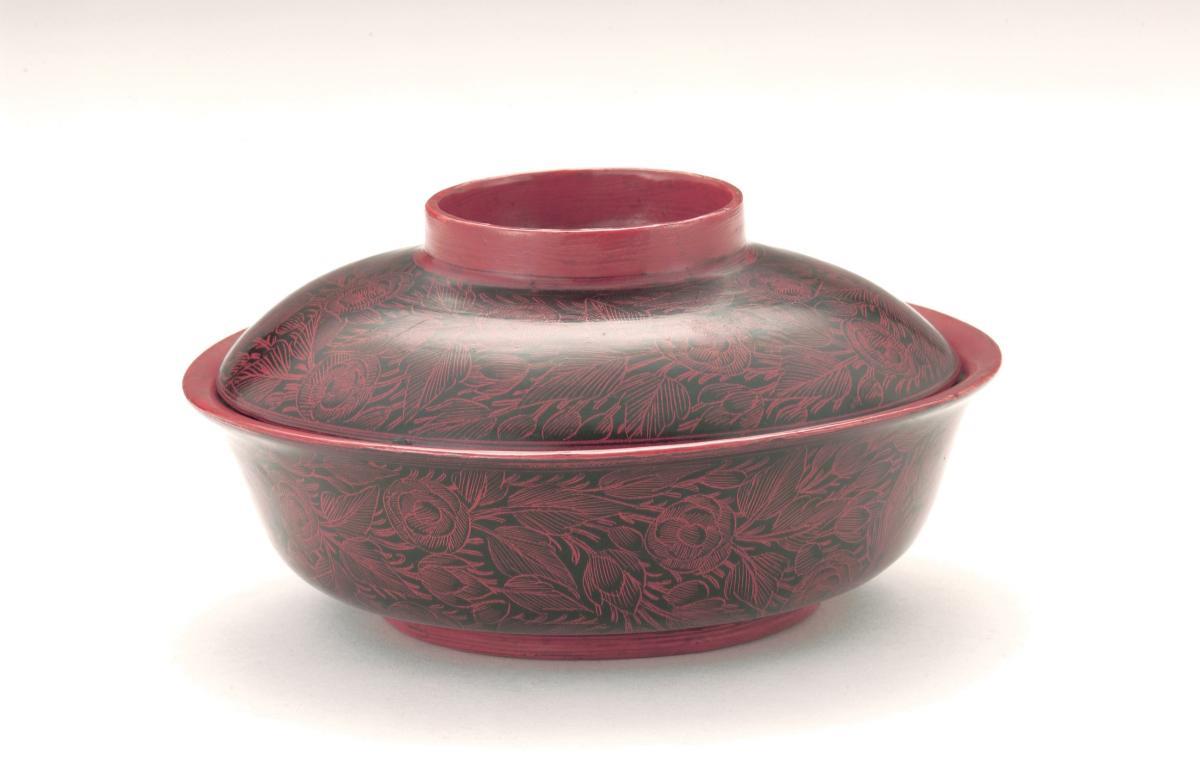 This lidded bowl with a plum blossom motif shows a little girl on the cover stitching what appears to be a propaganda material with a slogan that reads 'Long Live Chairman Mao'. Regarded as a symbol of endurance, the plum blossom has been a favoured motif in Chinese art for centuries. Used on Cultural Revolution propaganda items such as this, it has come to signify the communists’ perseverance in the revolutionary struggle.Children were popular subjects on ceramics and posters. Their brightness and optimism suggested that life under Mao’s leadership was free of worries. The innocence of children has strong emotional appeal, heightening their effectiveness as carriers of political messages.