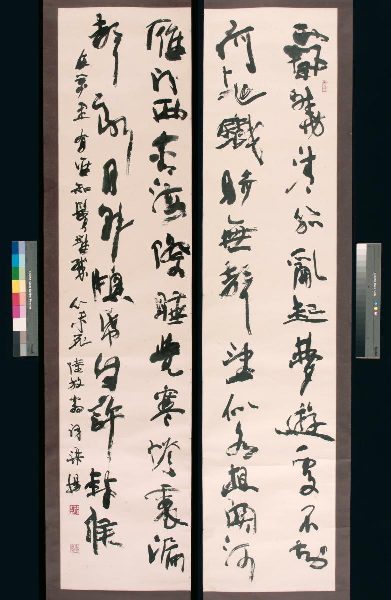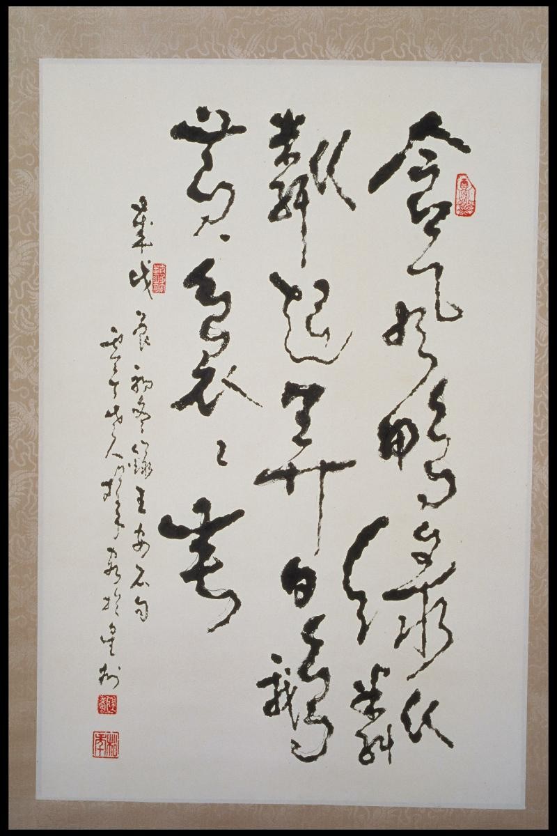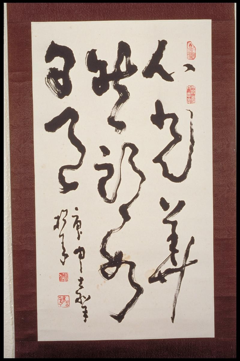 Born in Jiangsu, China, to a family of distinguished scholars, Reverend Song Nian (1911-1997), commoner name Song Tiecheng, studied in a private school and practised calligraphy from the tender age of six. At 16, he entered the monastery and shortly after, enrolled in Tsinghua University in 1928 to study literature. A student of famous Jiangnan scholar Xiao Tiu’an and other teachers, Song Nian consolidated what he had learnt and eventually developed an original script, known as the ‘Song Nian Style’. He emigrated to Singapore in 1961 and was the head of Puti Temple. Well-versed in the traditional Chinese art forms, namely poetry, painting, calligraphy and seal-carving, Song Nian was a renowned figure in Singapore’s art scene.Trained in the Chinese literary tradition, Song Nian was familiar with the Chinese classics, and was often inspired by them. Here is a phrase from ‘Shijing’ (‘The Classics of Poetry’), written in the wild cursive script where Song Nian’s distinctive style is evident.