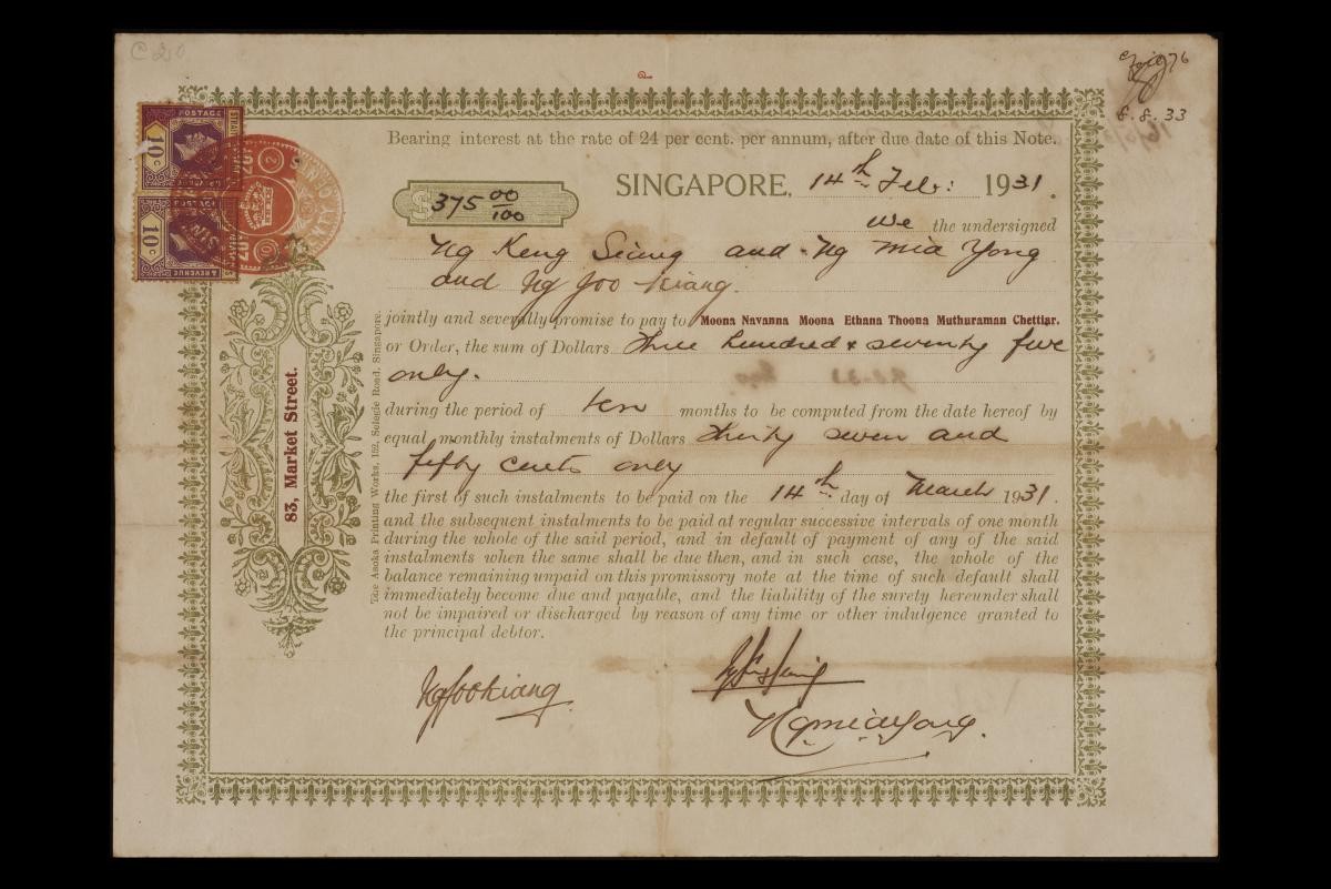 This note states how much the client has to pay per month. The sum was worked out by the Chettiar after assessing the client’s credit-worthiness. Interest rates varied according to the terms of the loan, and ranged from 13% up to 48% in the 1940s.