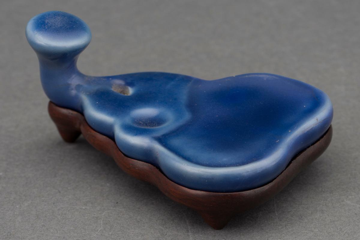 The inksticks feature designs based on a series of illustrations by the Qing court painter, Jiao Bingzhen, known as Gengzhi tu (“Pictures of Farming and Weaving”). Each of the inkstick depicts a stage in the production of silk. One of the inksticks bears the mark ‘Cao Sugong Jinzhi’ (“Respectfully made by Cao Sugong”). Cao was the most famous ink maker of the early Qing period whose creations were presented to the court.