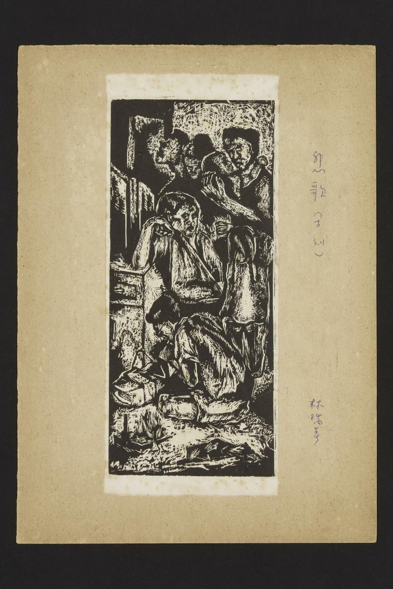 Tan Tee Chie (1928-2011) was born in Hainan, China. Upon graduating from the Nanyang Academy of Fine Arts in 1951 in Singapore, he became a lecturer in his alma mater. Best known as one of six key artists of the woodcut movement of the 1950s to 1960s in Singapore, he was also a seal-carving expert, painter, calligrapher and an art critic; he is listed in the China seal-carving artists’ directory, and the Chinese painting and calligraphy artists’ directory. Tan had held five solo exhibitions, one of which was an invitation by the University of Michigan. His artworks have been exhibited in China, Japan, Italy, Hong Kong, USSR, Malaysia and Singapore. ‘Bitter Suffering’ is one of a series of eight prints Tan produced during the height of the woodcut movement which highlights the plight and hardship faced by the underprivileged in post-war Singapore.