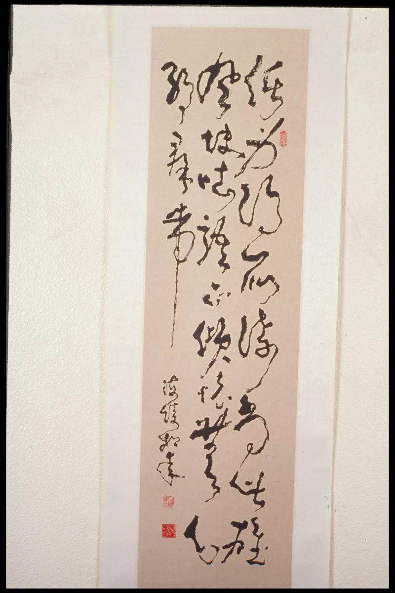 Born in Jiangsu, China, to a family of distinguished scholars, Reverend Song Nian (1911-1997), commoner name Song Tiecheng, studied in a private school and practised calligraphy from the tender age of six. At 16, he entered the monastery and shortly after, enrolled in Tsinghua University in 1928 to study literature. A student of famous Jiangnan scholar Xiao Tiu’an and other teachers, Song Nian consolidated what he had learnt and eventually developed an original script, known as the ‘Song Nian Style’. He emigrated to Singapore in 1961 and was the head of Puti Temple. Well-versed in the traditional Chinese art forms, namely poetry, painting, calligraphy and seal-carving, Song Nian was a renowned figure in Singapore’s art scene.This calligraphy by Song Nian is written in the wild cursive script, a branch of the expressive cursive script.