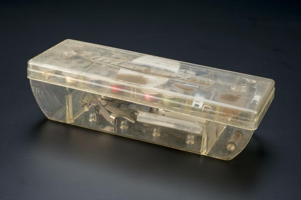 This metal box belonged to Eng Tow, a renowned local mixed media artist. Born in Singapore in 1947, Eng Tow is said to be one of the most outstanding local female artists to emerge in the 1980s. She began her art education at the Nanyang Academy of Fine Arts (NAFA) in Singapore after which she furthered her studies in the U.K., obtaining a Bachelor of Arts (Hons) from the Winchester School of Art at Hampshire in 1972 and a Master of Arts from the Royal College of Art, London in 1974. Her early works revolved around textile art which involves the manipulation of fabrics and textiles, either by sewing and/or applying colour. Her venture into printmaking and papermaking in the mid-1980s resulted in a cross-disciplinary approach to her later works. Eng Tow’s works, which are her impressions of memories and experiences, have been showcased in numerous solo and group exhibitions all over the world.