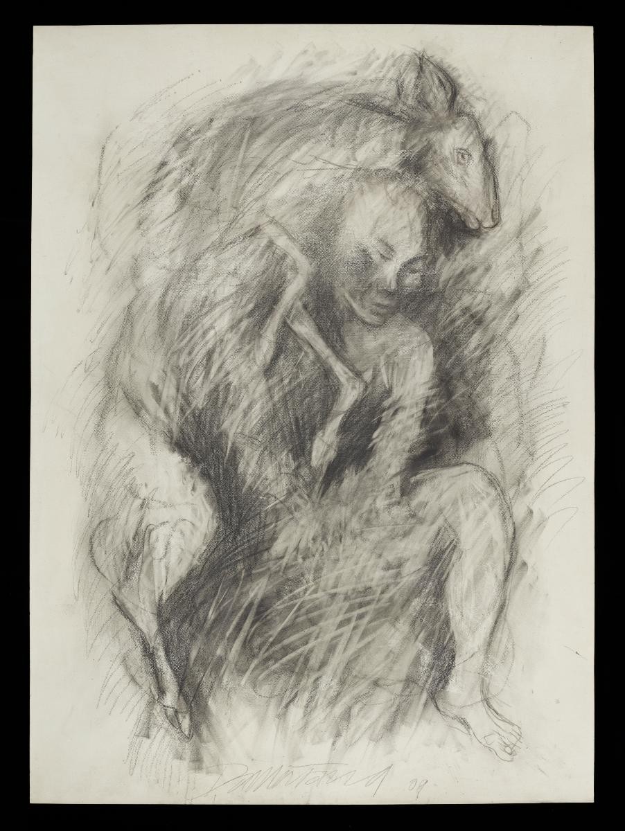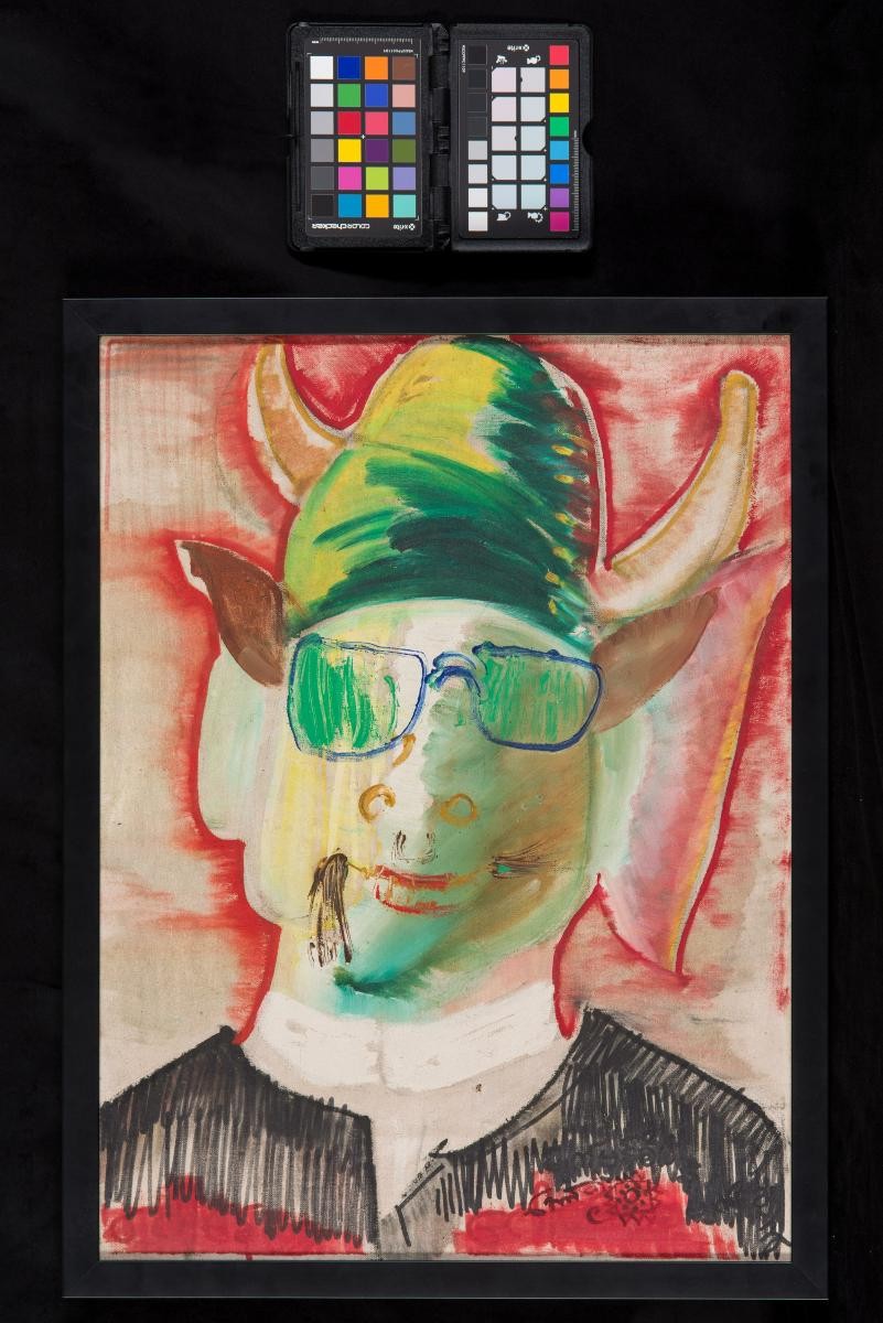 Born in Hanoi, Ha Tri Hieu (b.1959) graduated from Hanoi Industrial Fine Arts University in 1983. Together with Tran Luong, Pham Ouang Vinh, Hong Viet Dung and Dang Xuan Hoa, they are collectively known as the Hanoi ‘Gang of Five’. Hieu draws his inspiration from everyday life, cultural motifs and traditional art forms. He has participated in more than 15 exhibitions internationally, including two solo exhibitions in Vietnam.Hieu’s self-portraits are usually small in size and expressionistic in style. His love for the countryside sees him feeding a cow, yet not without the characteristic cigarette in hand. Influences from Cubism can be seen in this work.